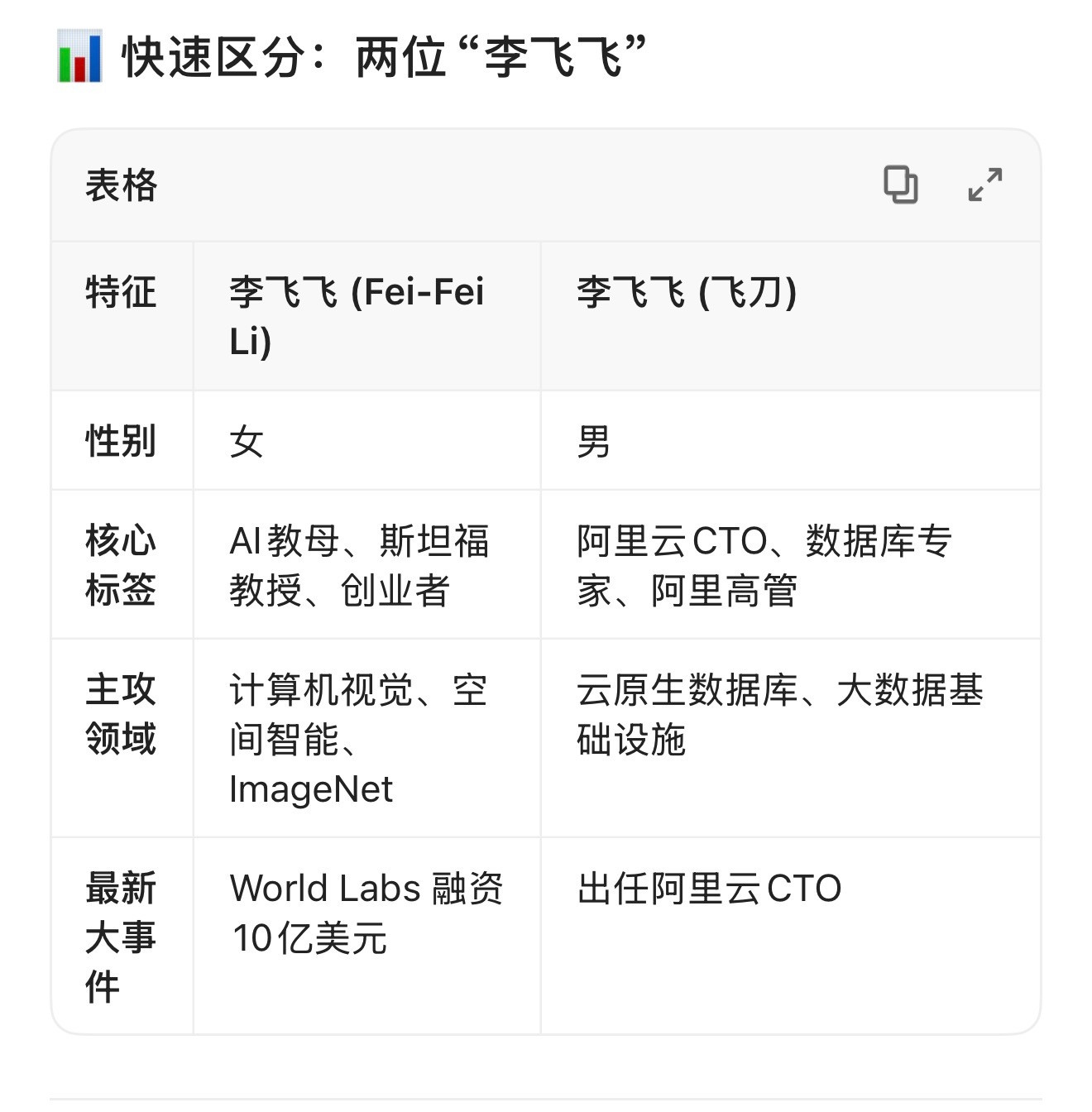 这个李飞飞(男)不是我们知道的那个AI教母李飞飞(女) ,但百度AI总结后给到的