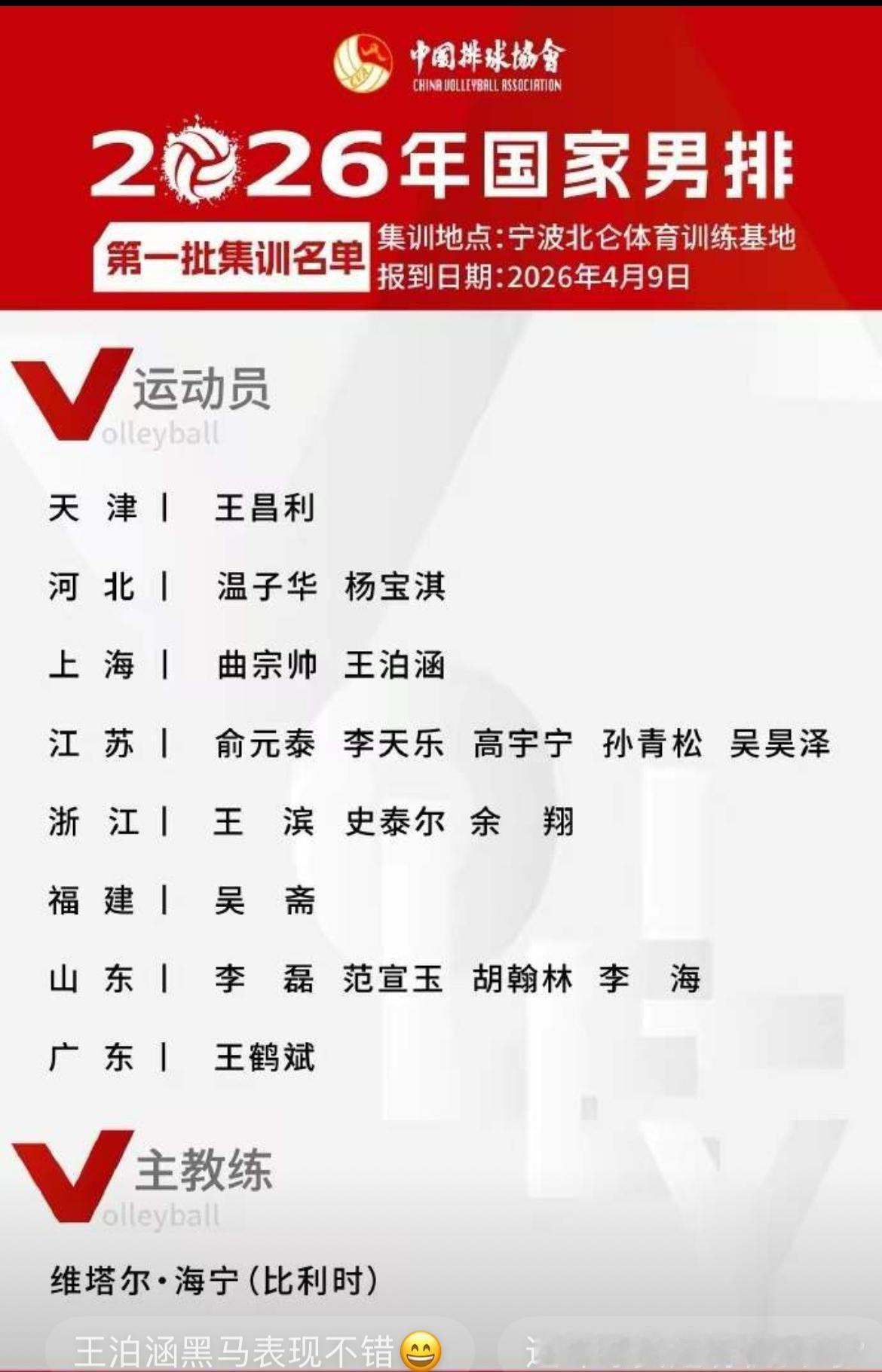 这次公布的中国男排集训名单,A级冠军天津男排只有一人,而A级第八名江苏男排有五人