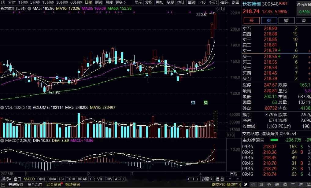 又超4000家跌,幸好$长芯博创 sz300548$ 继续大涨,但是也不敢再去留