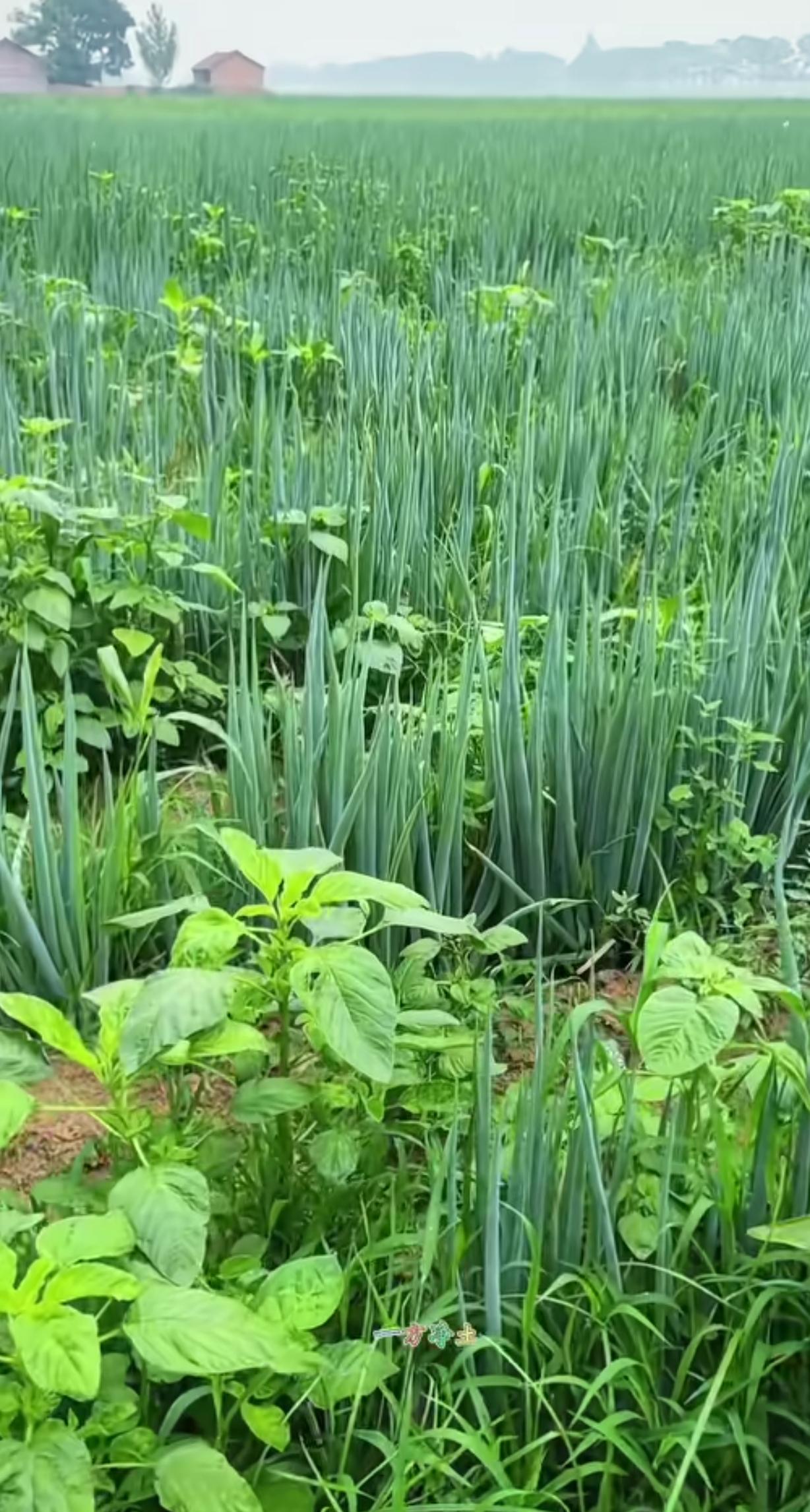 田埂边的葱苗长势旺盛,星星点点的小野花夹杂在青草间,不起眼却格外灵动,没有刻意的雕琢,全是大自然最本真的模样。
