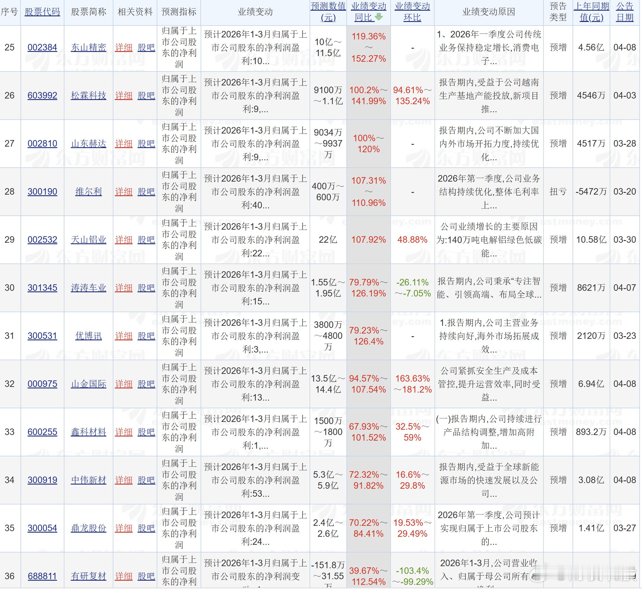 大盘回调,要跑吗?(26年一季报业绩预增,见下表)