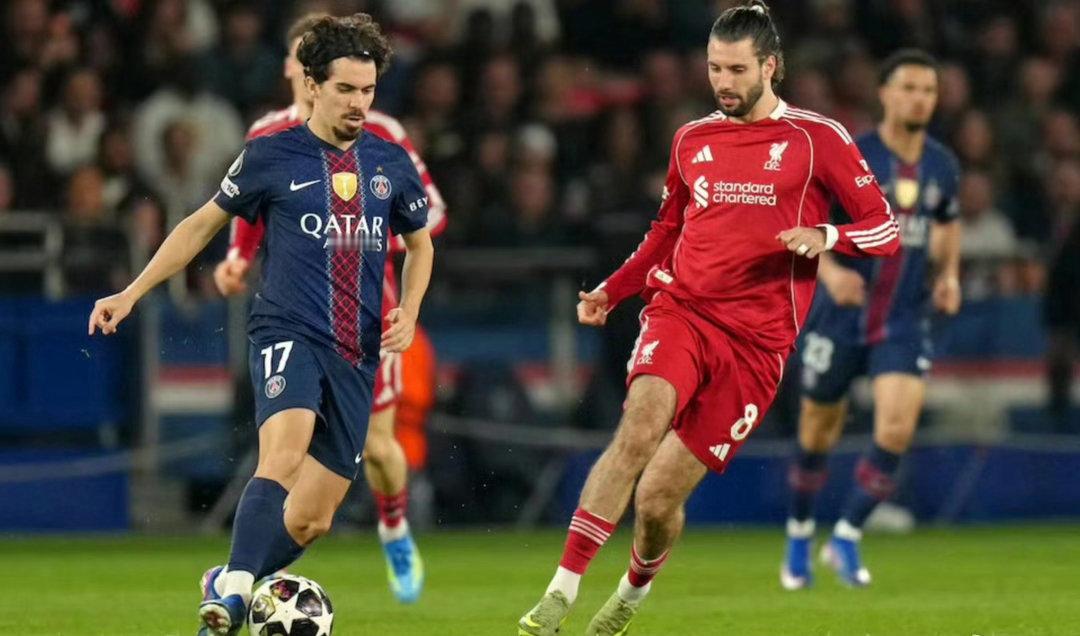 4月9日欧冠1/4决赛首回合,巴黎圣日耳曼对阵利物浦,巴黎2-0胜出。第11分钟,杜埃转身射门,球折射入网,巴黎1-0领先。第37分钟,巴黎反击,杜埃射门被马马尔达什维利扑出。第65分钟,若昂-内维斯传球,克瓦拉茨赫利亚破门,巴黎2-0。第70分钟,科纳特犯规,主裁判观看VAR后取消点球判罚。第82分钟,阿什拉夫射门,马马尔达什维利扑出。第86分钟,巴黎反击,登贝莱劲射击中立柱。比赛结束,巴黎2-0利物浦。足球欧冠联赛巴黎圣日耳曼2比0利物浦