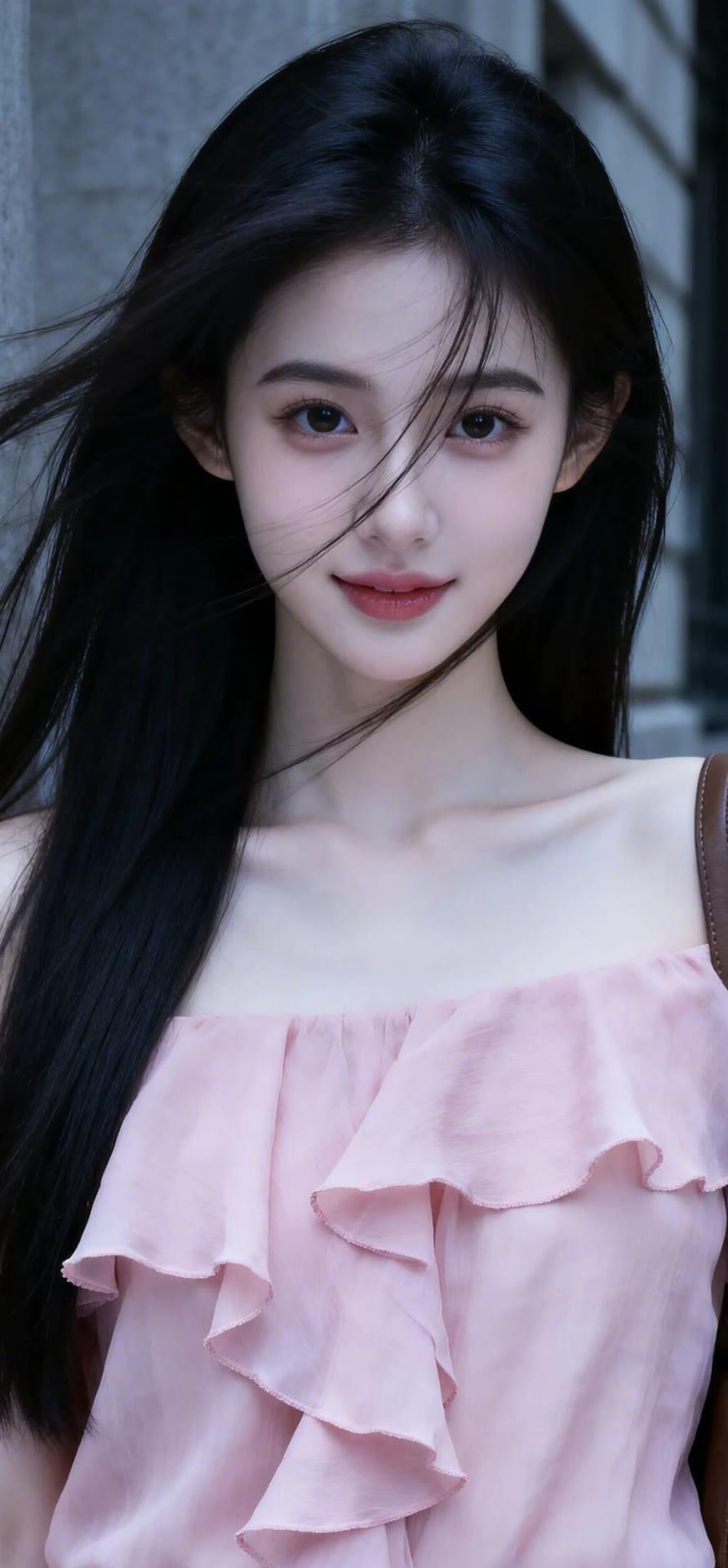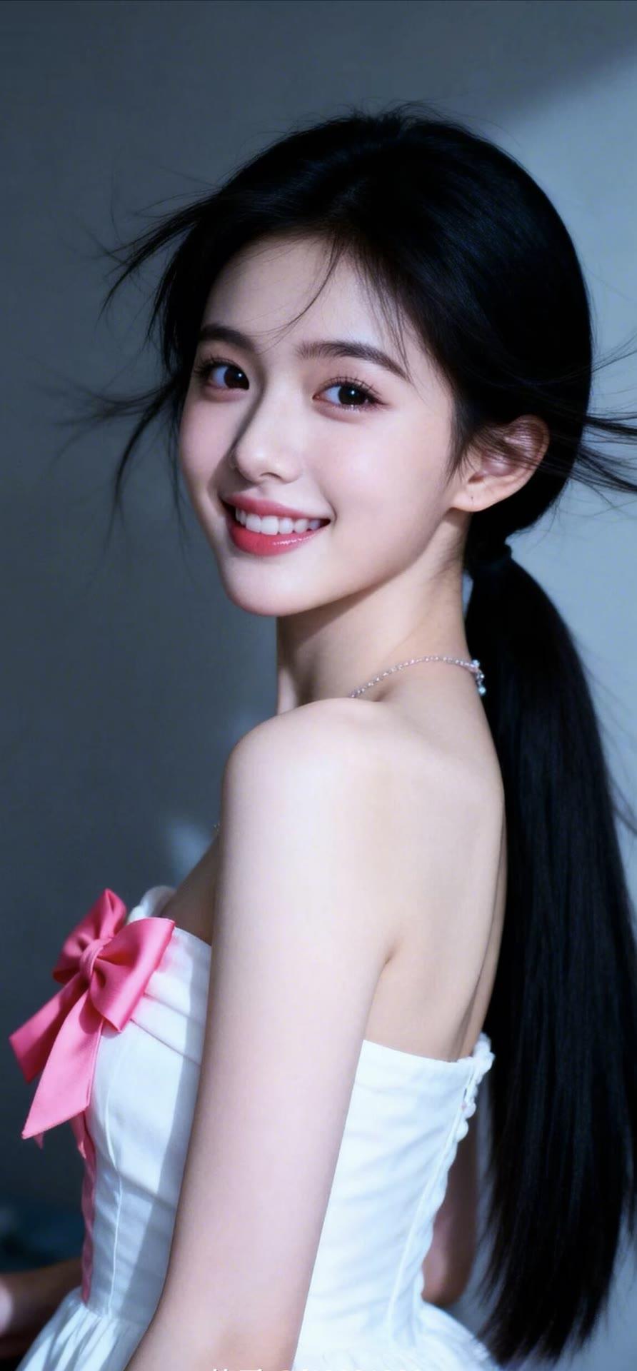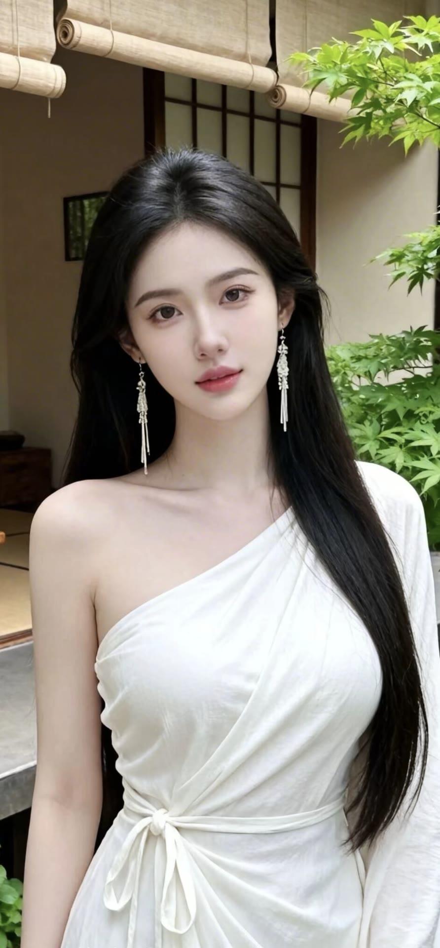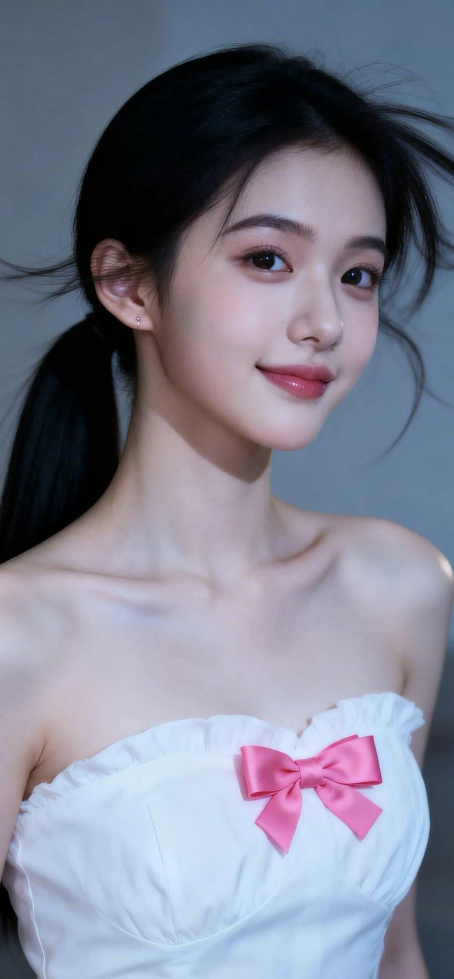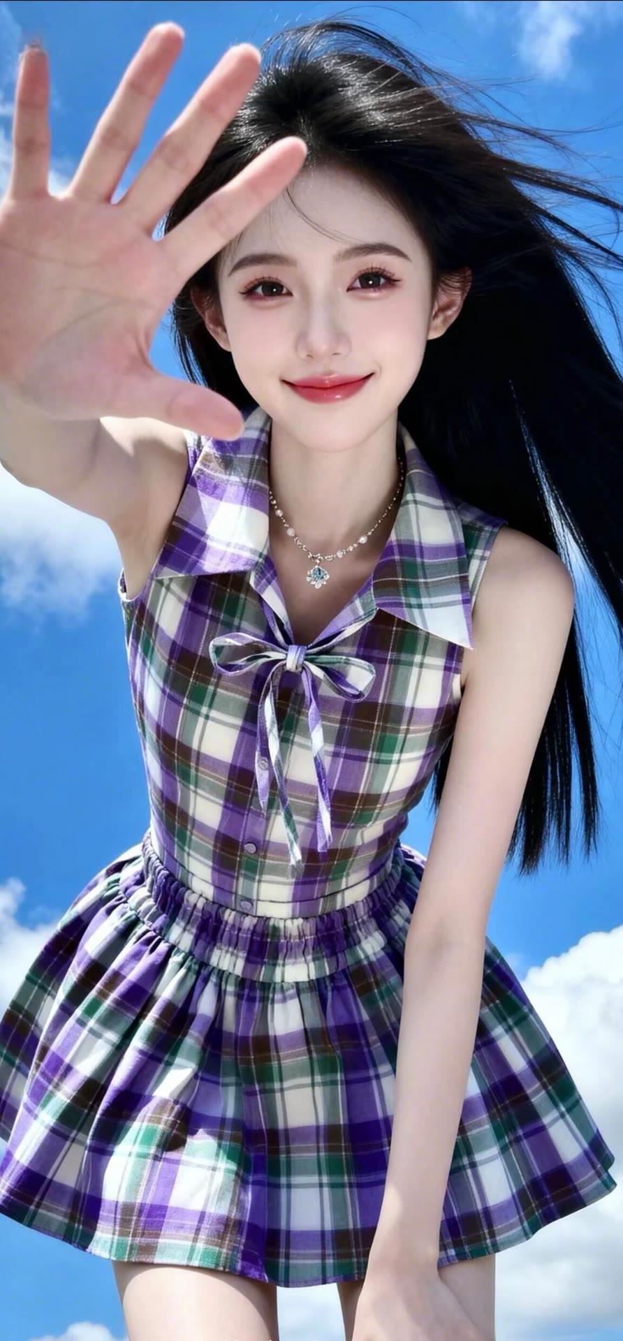 甜美少女,绿裙花边,温柔微笑,梦幻可爱