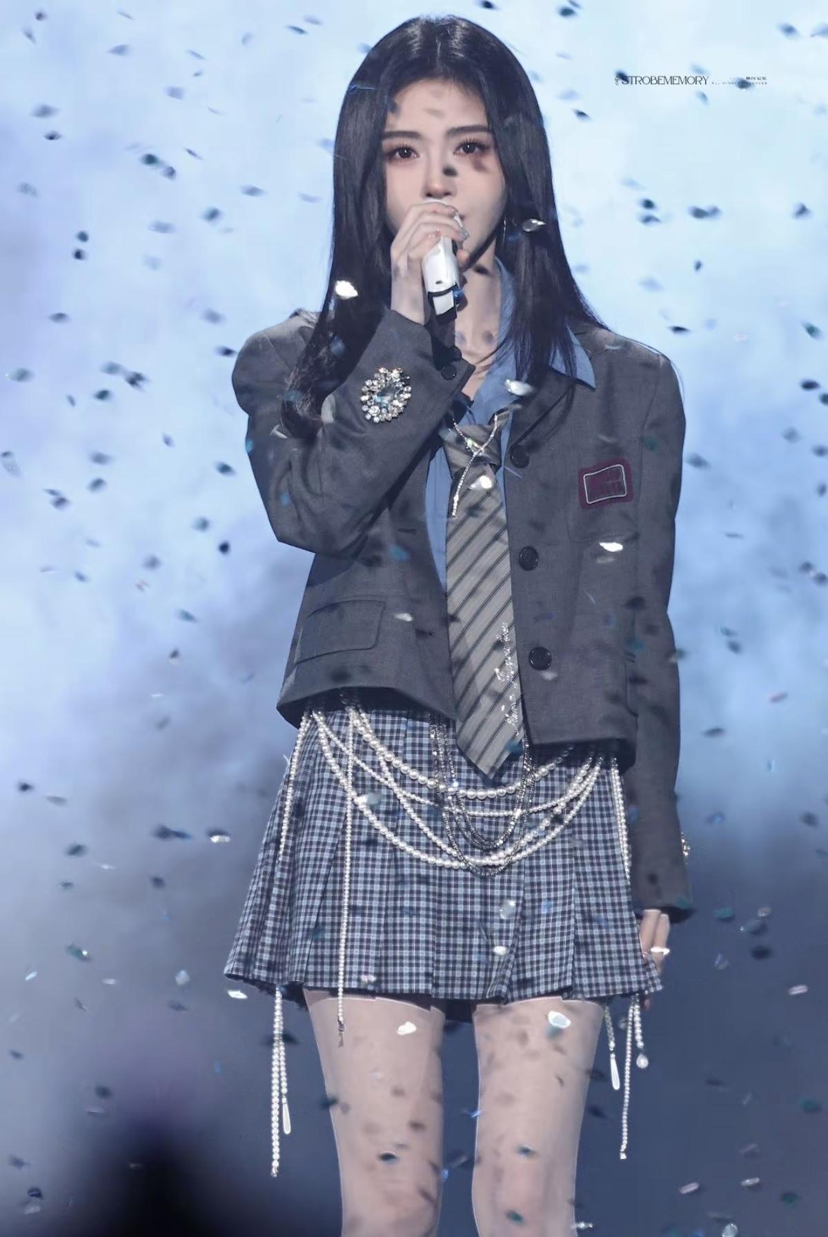 谁能拒绝鞠婧祎的学院风造型!灰西装+格纹裙+珍珠腰链,把甜酷感焊在身上,领奖台上的小鞠美到发光[赞]娱乐明星