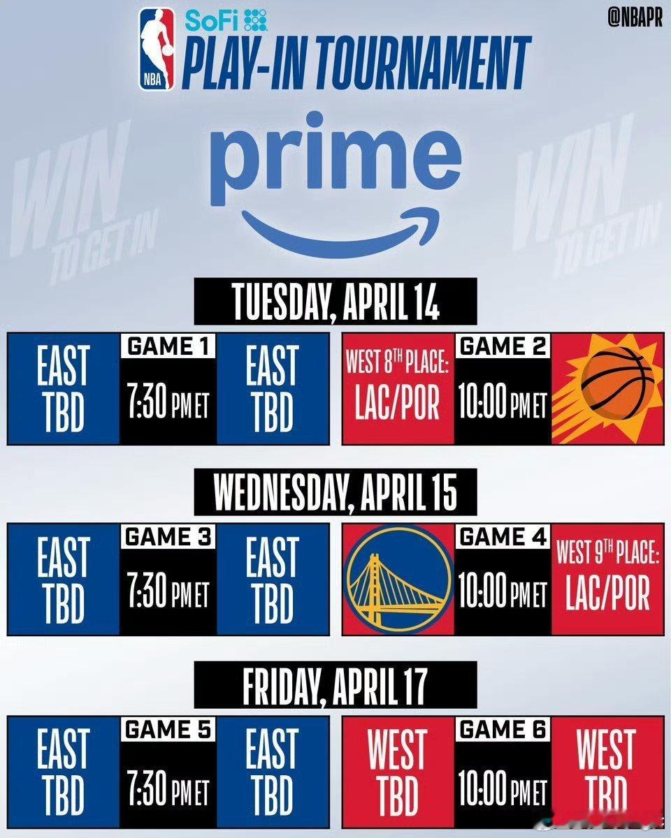 NBA公布本赛季附加赛赛程附加赛常客!NBA官宣了附加赛的完整赛程,勇士16日早
