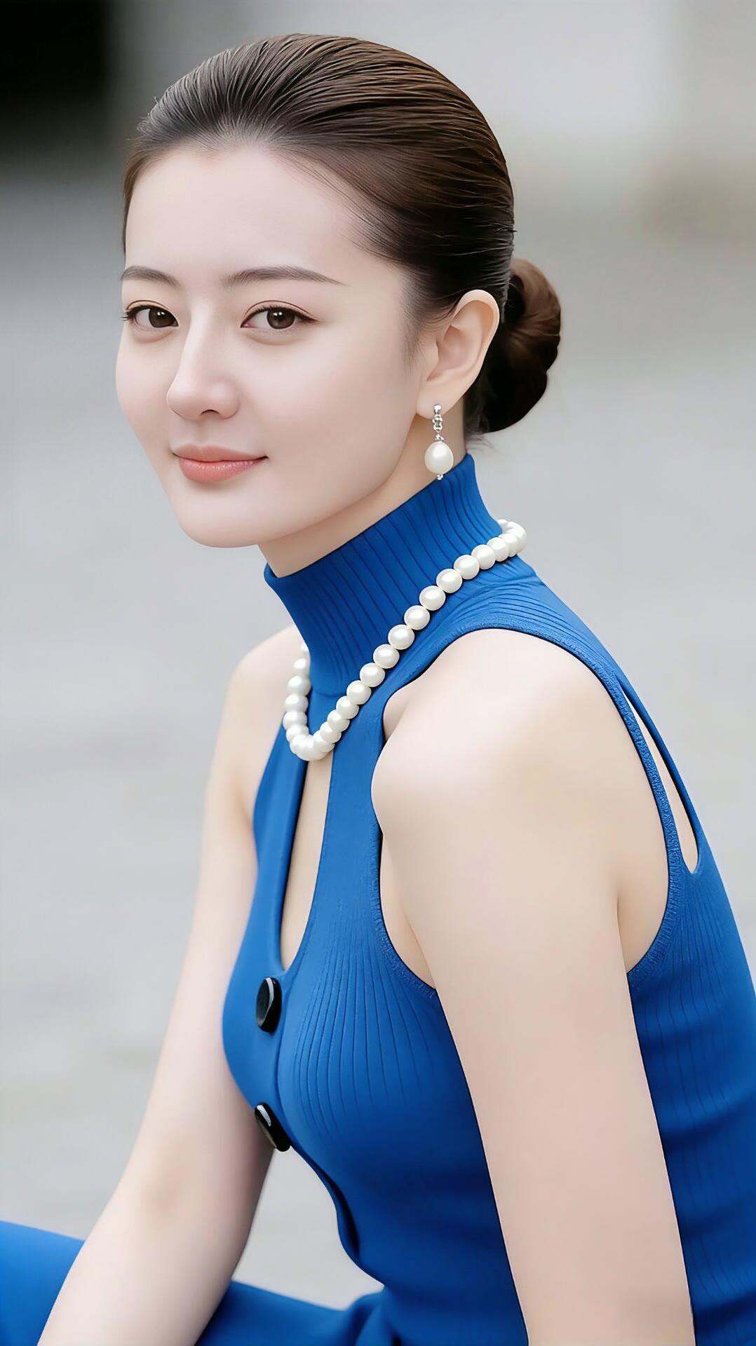 优雅气质,珍珠耳环与黄色针织裙的完美搭配,尽显时尚魅力!
