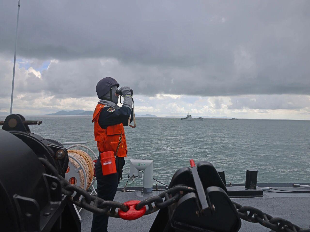 台海局势 比较少见的海军舰艇兵个人防护装备,隔绝式化学氧/压缩氧自救呼吸器,应该和矿用自救器差不多,之前我军舰艇兵用的多是过滤式防毒面具。