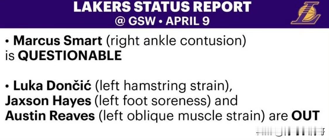 湖人伤病情况: