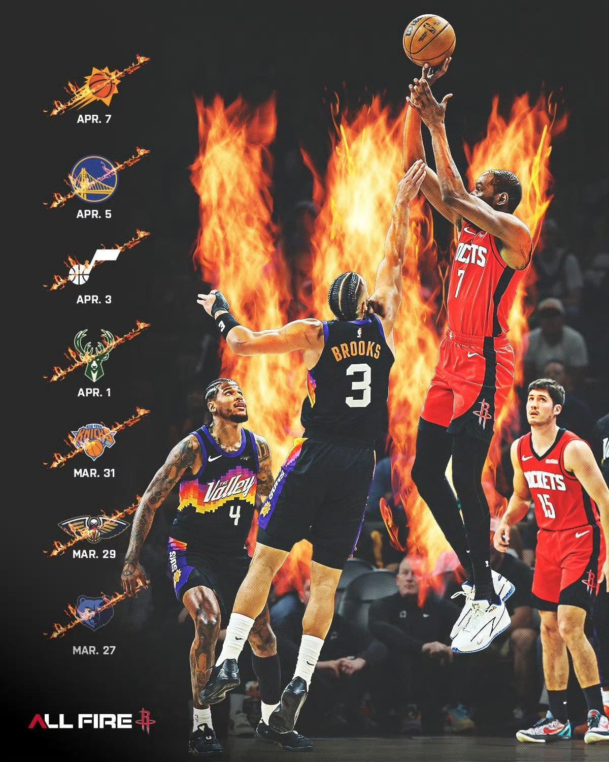火箭明天八点主场迎战76人。 剩余三场比赛完美收官。👏