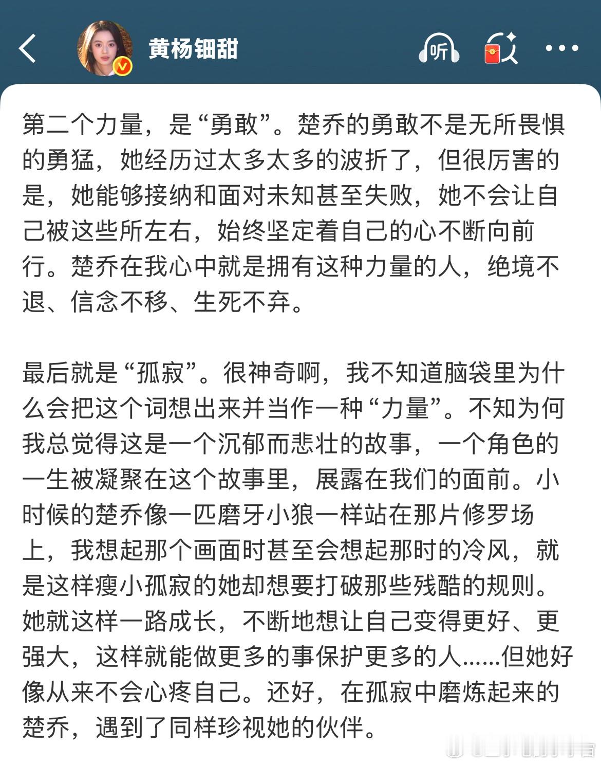 《楚乔传2》开播,黄杨钿甜发长文分享楚乔带给她的力量,给网友看笑了!纷纷留言,大
