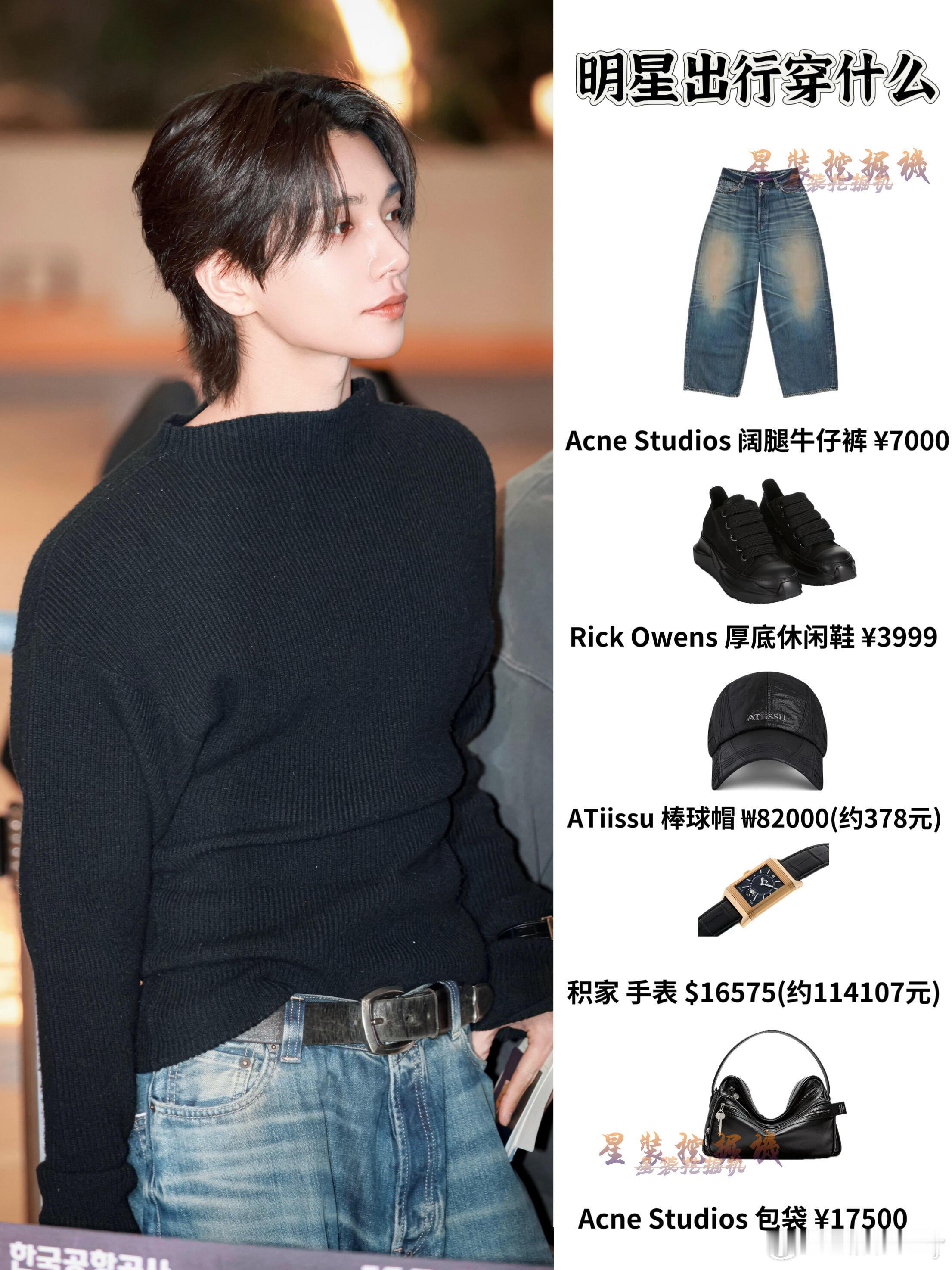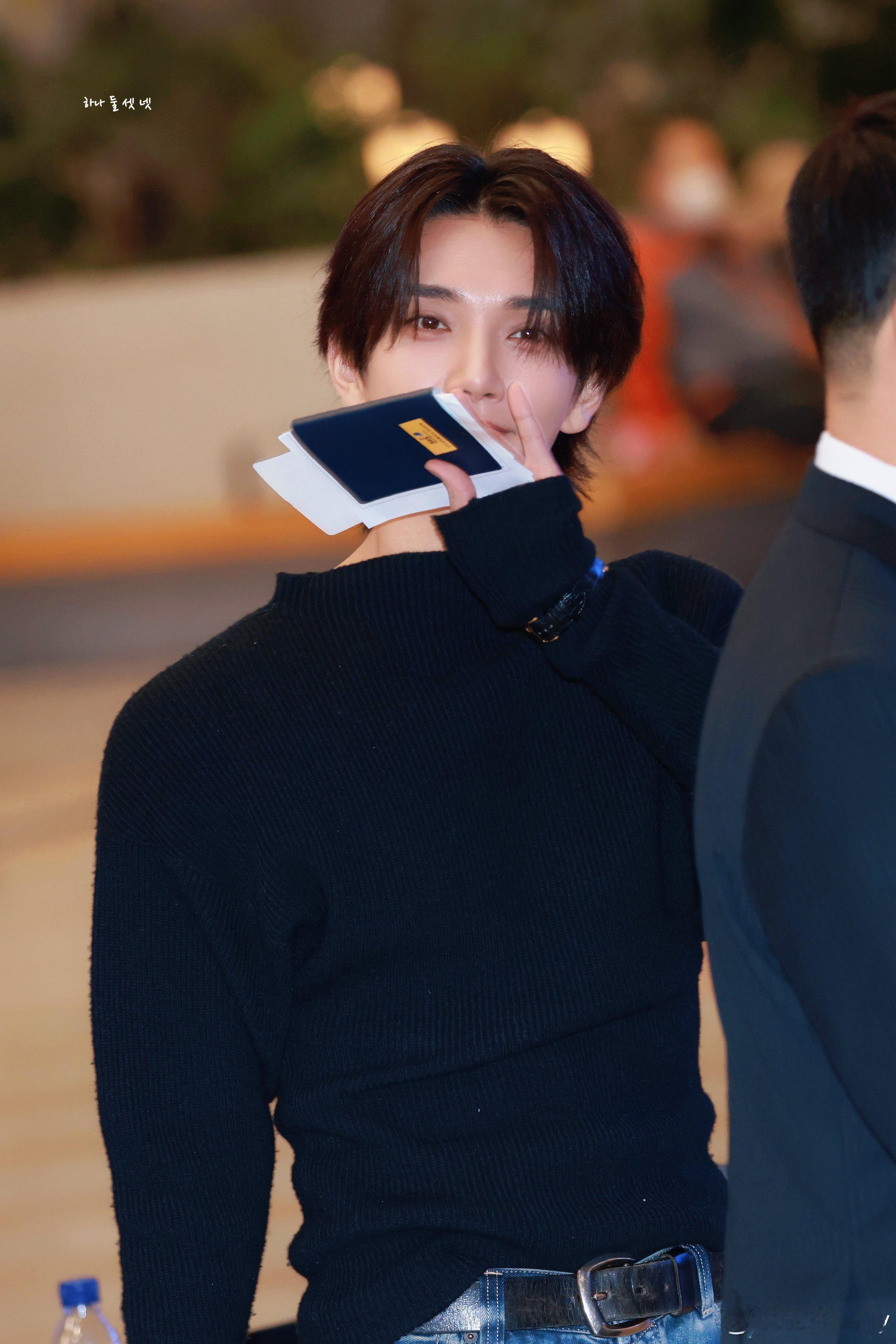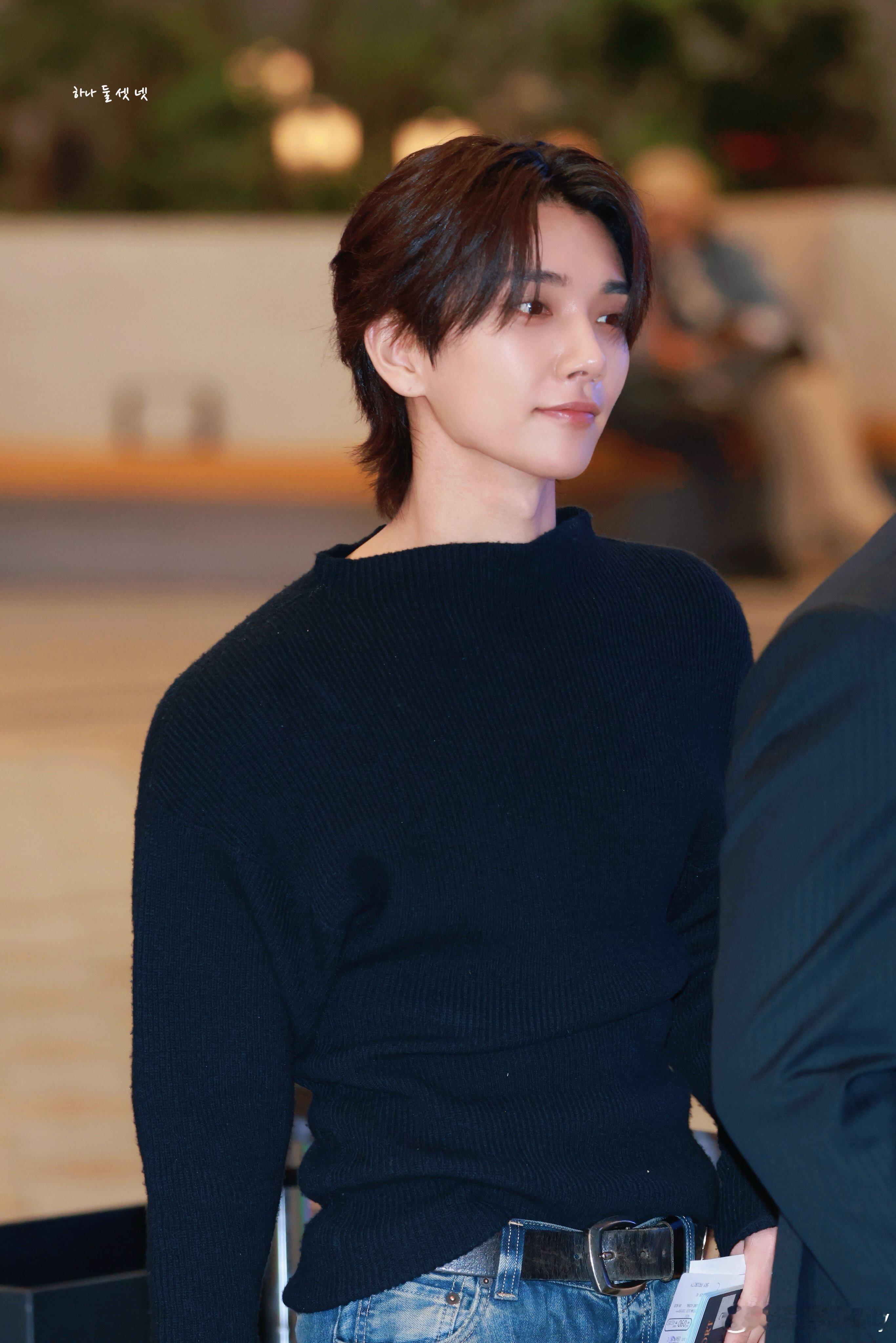 洪知秀4.9✈️Joshua 洪知秀今日机场穿搭,黑色针织毛衣下搭阔腿牛仔裤配厚底休闲运动鞋,今天这造型太帅了!