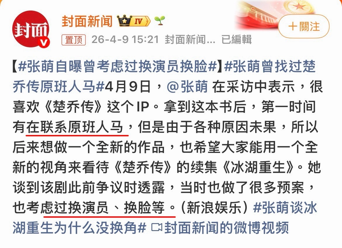 。。。我只能说主演的演技都很差,比起女主,男主男配的对手戏更难看…张萌曾考虑换脸黄杨钿甜