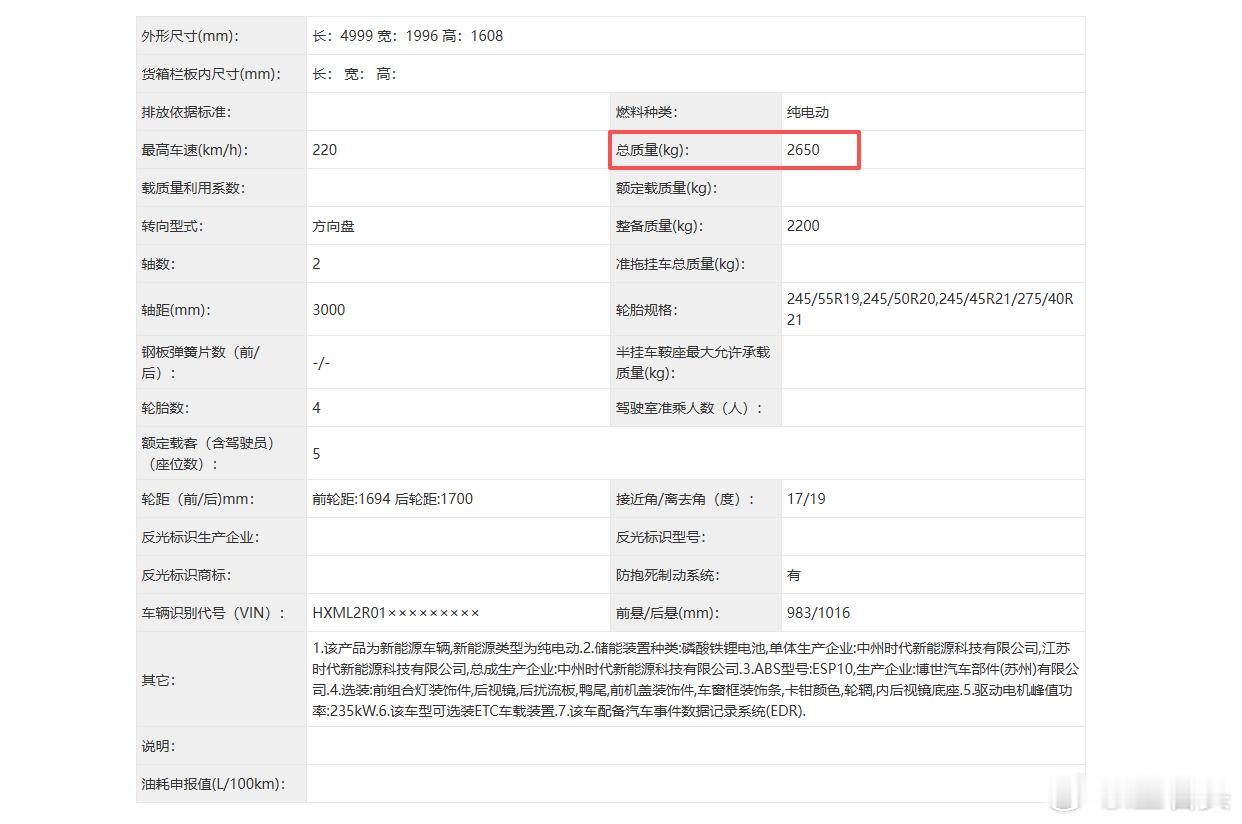 而现在,这个620km版本已经出现在工信部的申报名单中了,它的整备质量只有2200kg,比96.3度电版本的2315kg轻了115kg。