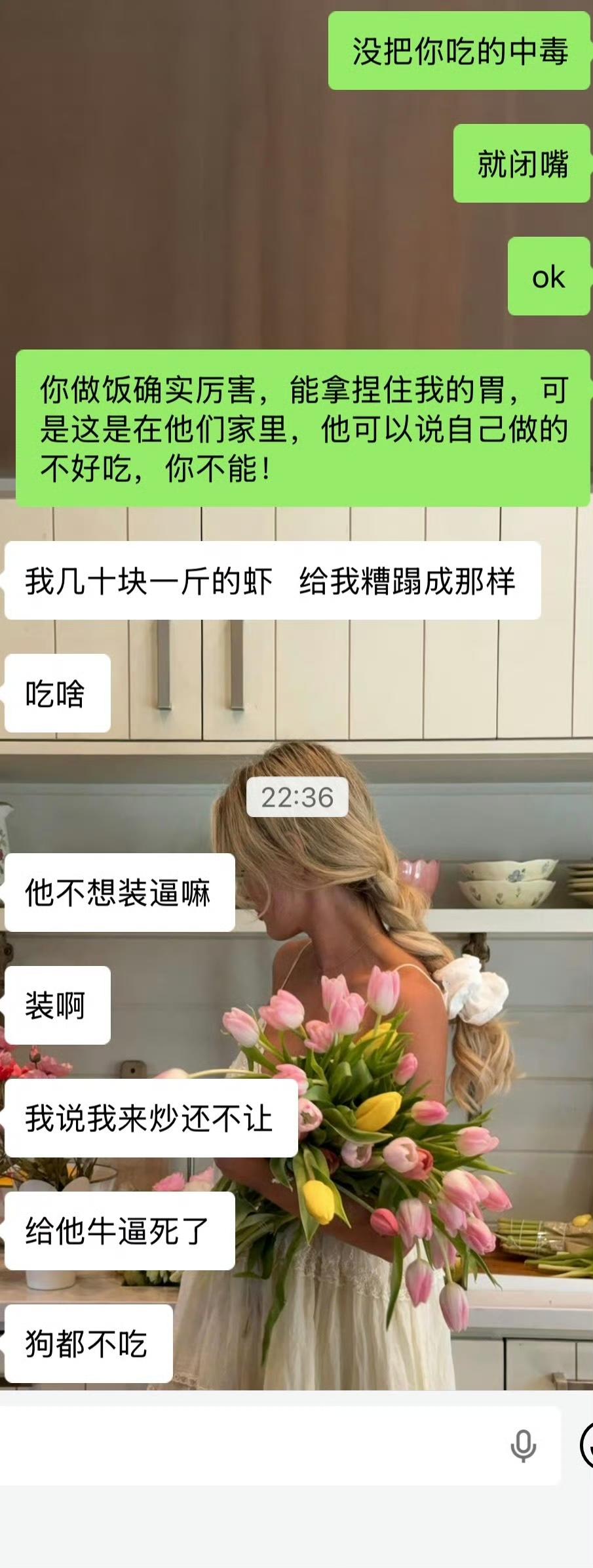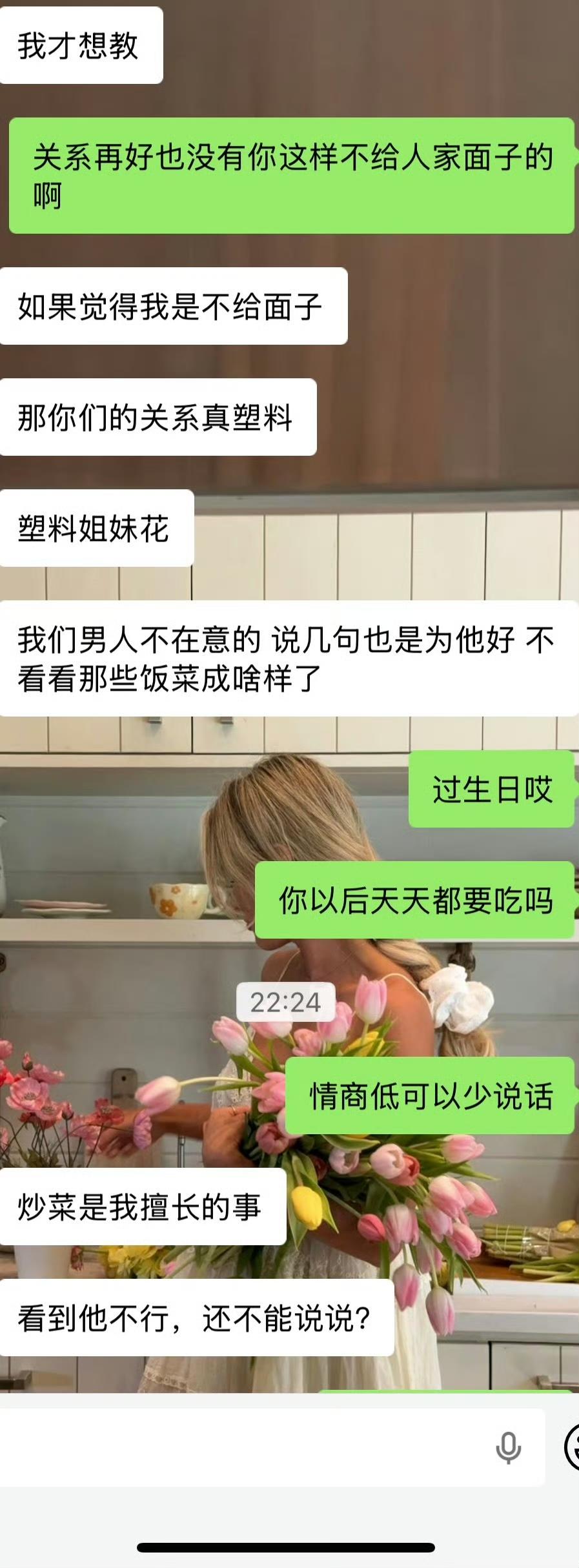 带男朋友去闺蜜家吃饭,他在饭桌上对饭菜指指点点,差点掀桌子,这情商也是也是够离谱的。闺蜜过生日,女子带着男朋友去她家庆祝。闺蜜的男朋友亲自下厨,做好饭了,大家一起上桌吃,男朋友动了一下筷子就嫌弃菜太淡了,看了一盘虾又说新鲜的虾应该清蒸,才够鲜,这样红烧浪费食材。他也不管闺蜜和她男朋友男朋友脸上已经挂不住了,继续滔滔不绝,甚至对她男朋友说,对闺蜜的男朋友说,早就和你说了,我来帮你弄,你又不愿意。女子就拦了一下她的男朋友,叫他少说话多吃饭。男朋友生气了,跑到一边去玩手机。闺蜜和男朋友一再喊她吃饭,她就借口出去了。这样不分场合,不顾及大面的男生,真的是少有。去人家家里做客,却让人家下不来台,到哪里都很难受人欢迎。