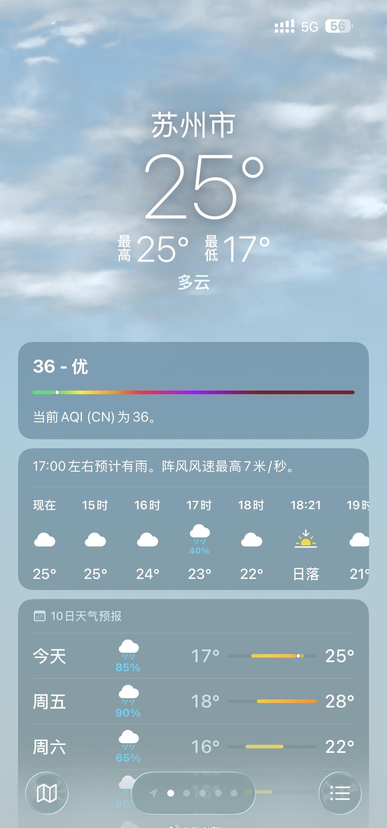 最近苏州的天空,主打一个丝滑切换。上一秒蓝天白云,下一秒乌云漫卷,前后不过一小时