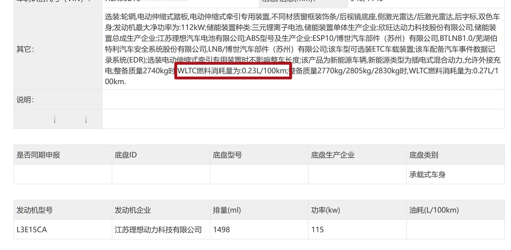 3️⃣能耗表现突出根据工信部披露的情况,WLTC燃料消耗量仅为0.23L/100km,不仅相比老款0.71的水平大幅下降,也低于同级0.4-0.7的水平(比如极氪8X为0.31/0.41)。不知道这是怎么做到的。