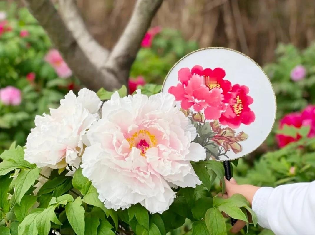 2株牡丹珍品同时绽放¹ 去赏牡丹可以带个卷尺,因为很多牡丹花又大又圆!可以量量花