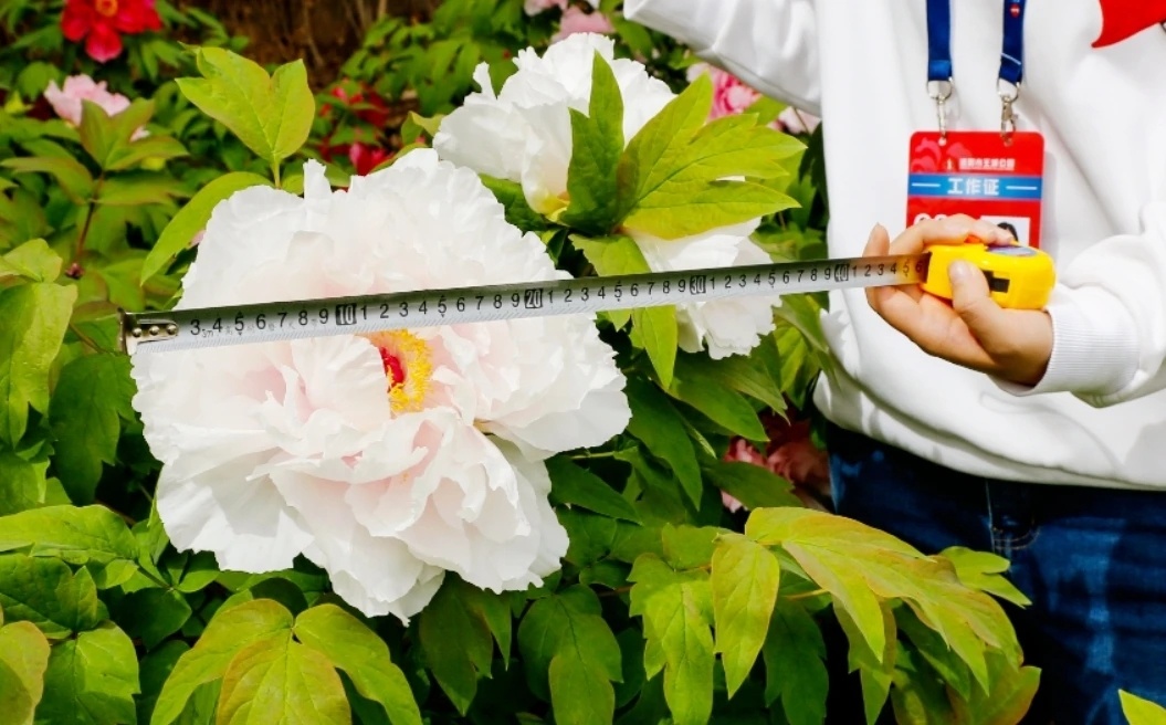 2株牡丹珍品同时绽放¹ 去赏牡丹可以带个卷尺,因为很多牡丹花又大又圆!可以量量花盘多大!² 比脸还大的“八束狮子”牡丹!花径可以轻松长到25公分以上,甚至达到30+!³ 再比如“天衣”牡丹。不得不说日本人植物育种确实牛,这俩都出自日本。热点科普