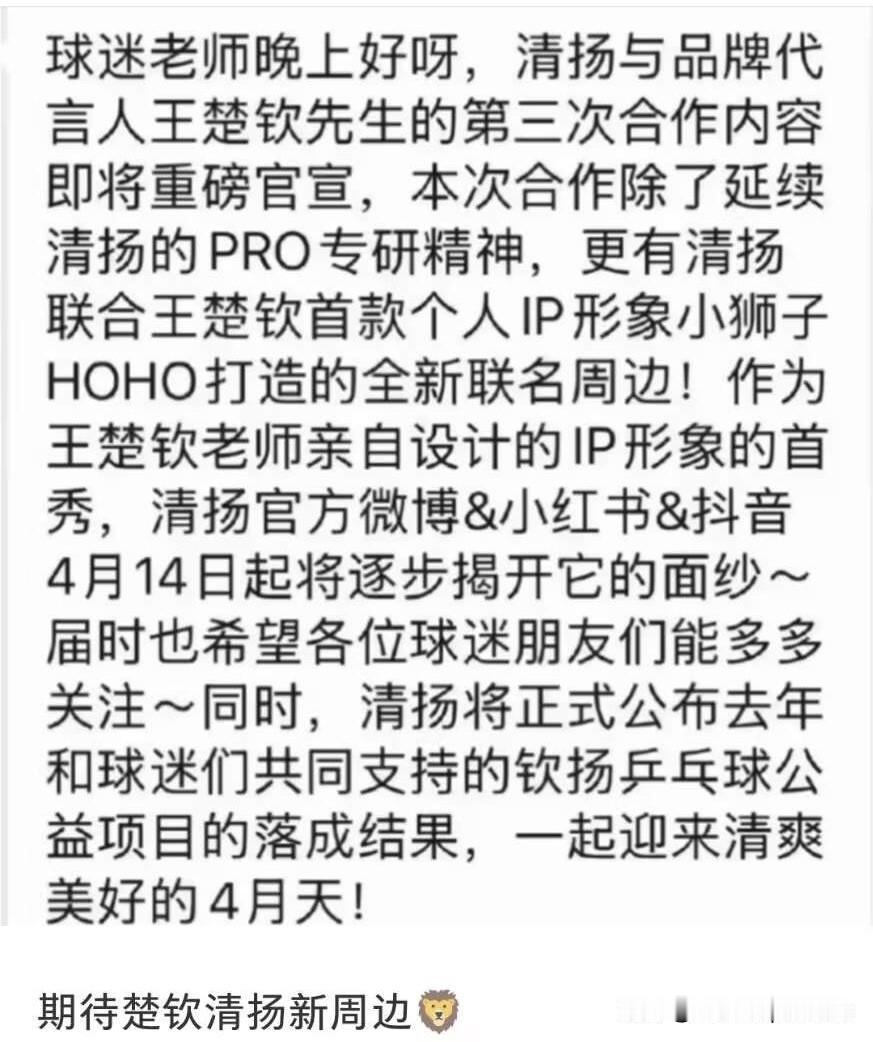 王楚钦个人IP形象的HOHO小狮子即将上线了,