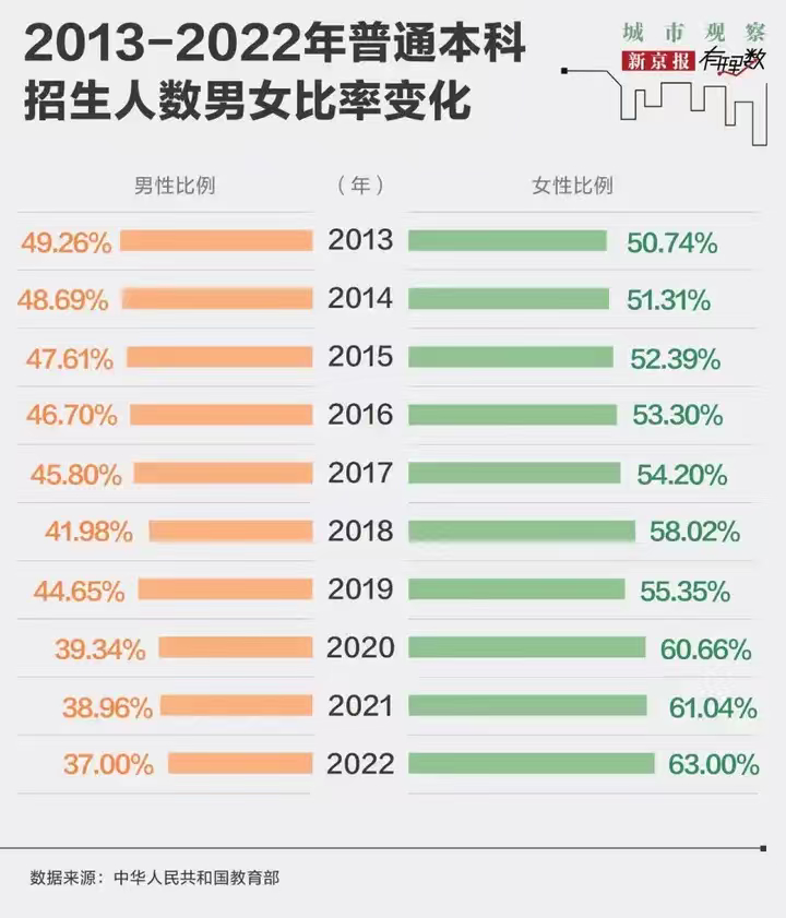 为什么2022年以后,普通本科招生男女比例数据没有了?2013年普本招生男女差不
