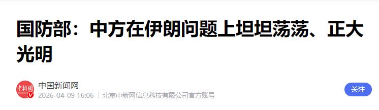 4月9日,针对美官员声称清楚中俄为帮助伊朗所采取的行动,必要时将对这些行动加以应对。中国国防部强调:中国在伊朗问题上坦坦荡荡、正大光明,从不做拱火浇油的事。