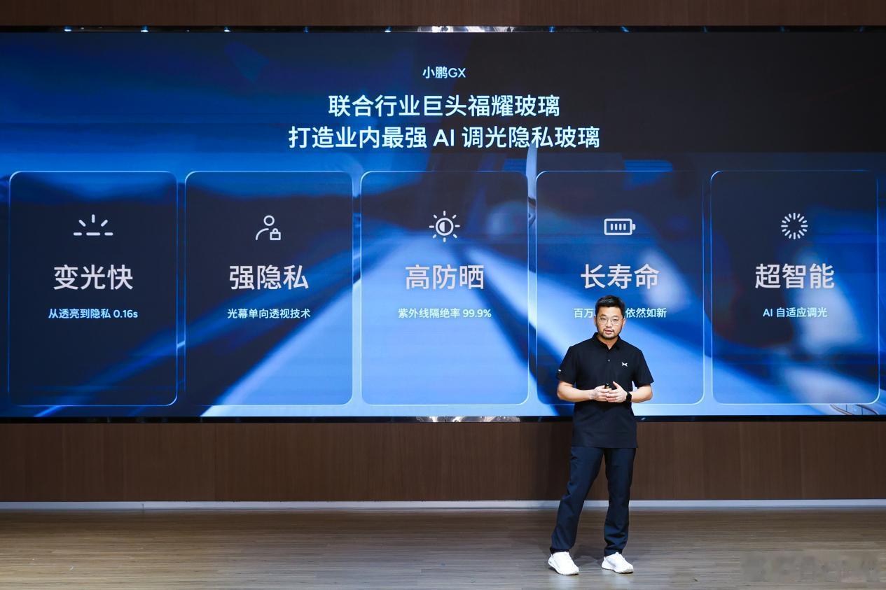 高端向上的豪华车卷细节是大趋势,比如说这次小鹏GX和福耀一起搞的这个AI调光玻璃有点东西,算是给车窗玻璃“升了级”。核心就三点:一是变得巨快,0.16秒就能从通透变到全隐私,一眨眼的功夫,露营想小憩或者车上办点私事,喊一声“小P”秒变暗。二是隐私和防晒拉满,变暗后外面完全看不见里面,但里面看外面很清楚,而且能隔绝99.9%的紫外线和99.4%的可见光,夏天带孩子出门,基本不怕晒了。说白了,它不再是块“傻玻璃”,能根据外面光线自己调明暗,用起来挺无感的。这次算是把以前豪车和飞机上的玩意儿,真正量产装车了,GX上全车有6块,总面积同级最大,体验怎么样,还真有点期待。小鹏gx联手福耀造全球最好的ai隐私玻璃 广州·广州白云国际机场-T3航站楼