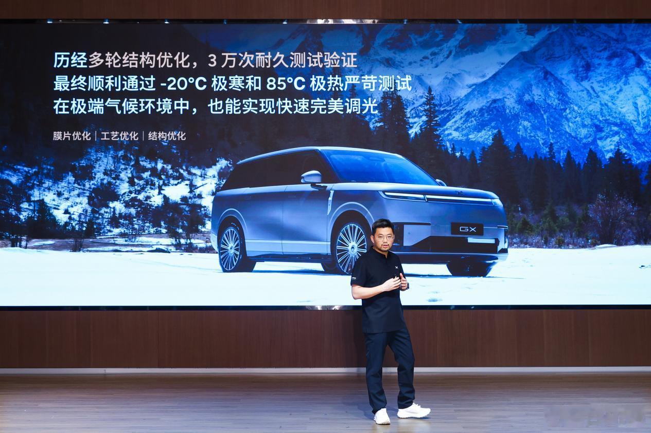 高端向上的豪华车卷细节是大趋势,比如说这次小鹏GX和福耀一起搞的这个AI调光玻璃