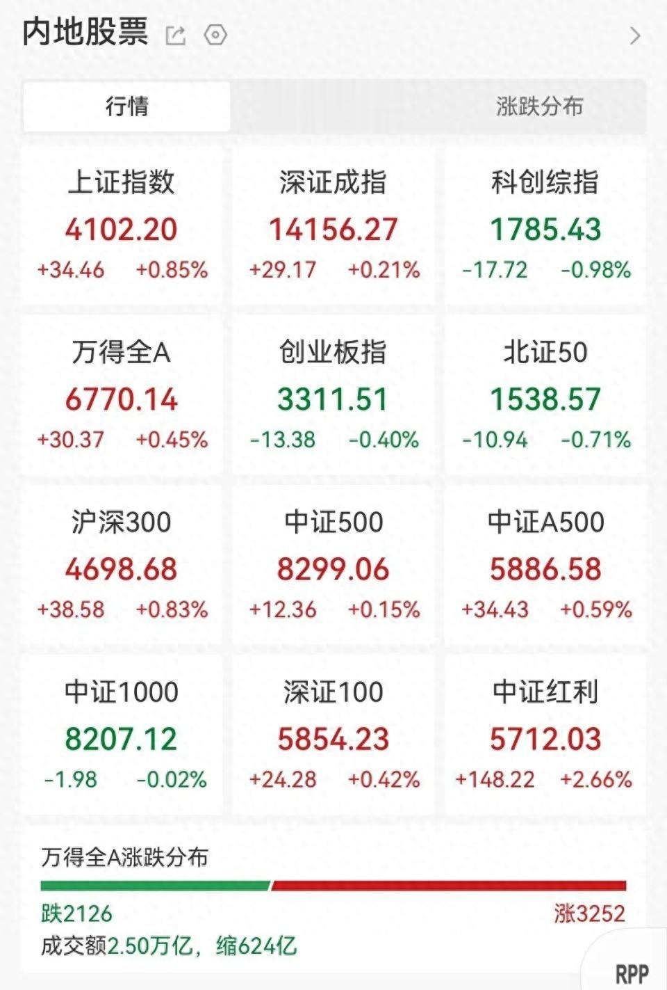 大河财立方消息,2月4日,A股三大指数涨跌不一,上证指数收盘报4102.20,重新站上4100点,深证成指上涨0.21%,创业板指跌0.41%,全天市场成交额为2.50万亿元,超3200只个股上涨。