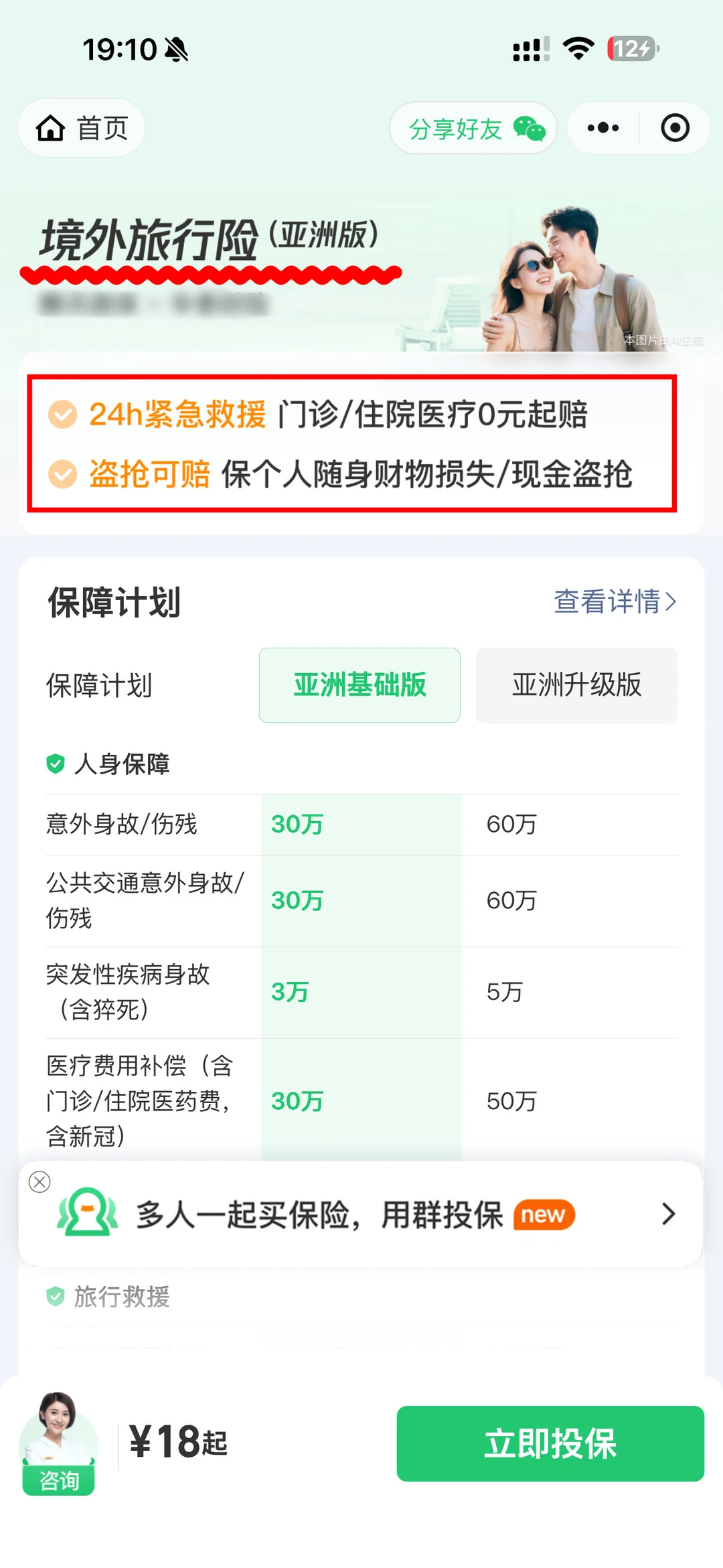 出国游玩难免遇到突发状况,国外看病和处理问题都不便宜,也很耗精力。像在当地尝鲜街头小吃后,因饮食问题引发急性肠胃炎、严重腹泻等,需要去医院就诊购药甚至住院,产生的医疗费用都能保,最贴心的是境外医疗费用可以全部报销,一分钱不用自己掏!有份保险兜底,不仅能报销,遇事也不用自己硬扛,玩起来才真正安心,我购买的是腾讯微保的境外旅行险(亚洲版),它可以涵盖以下旅行高发情况: