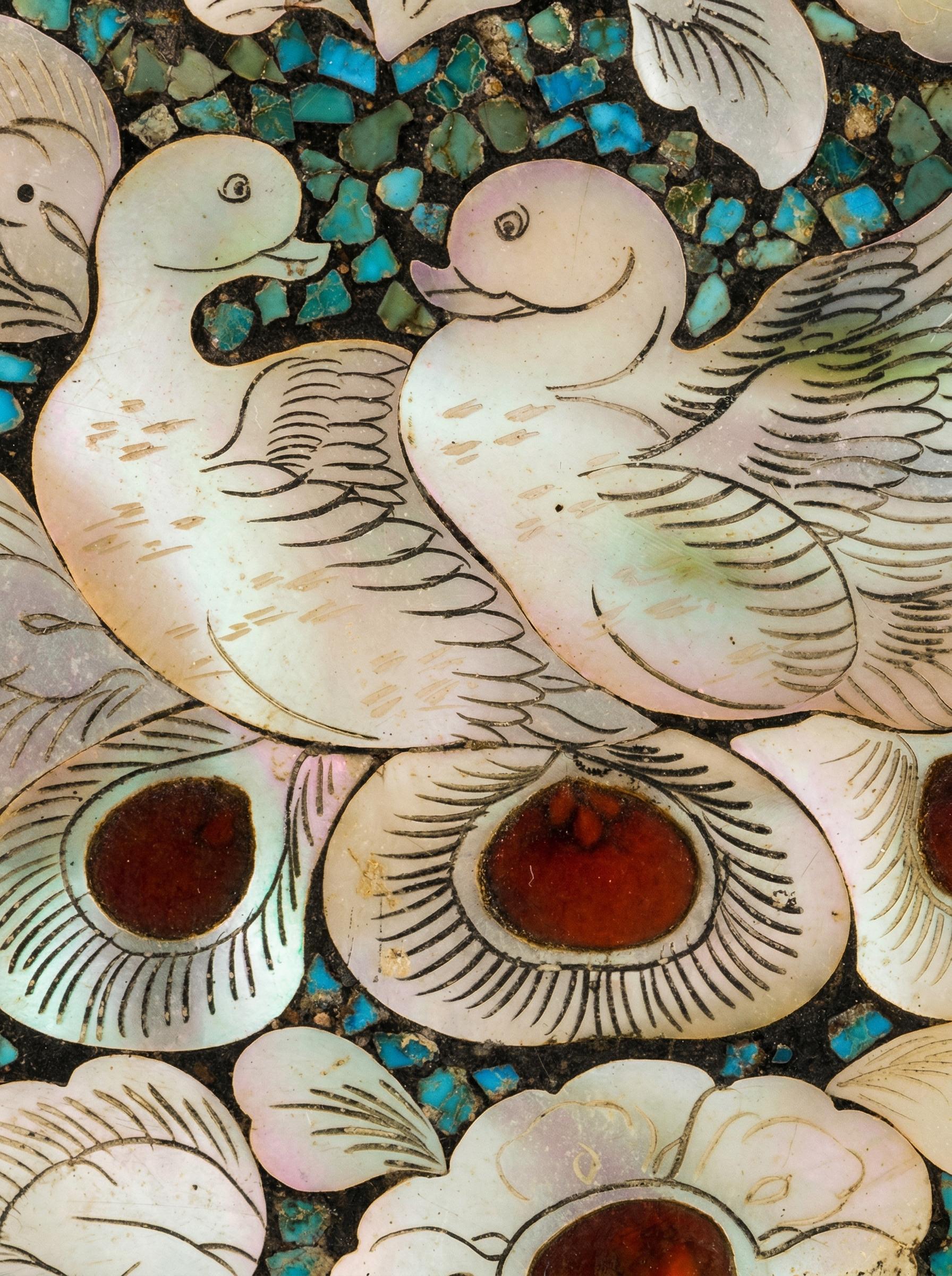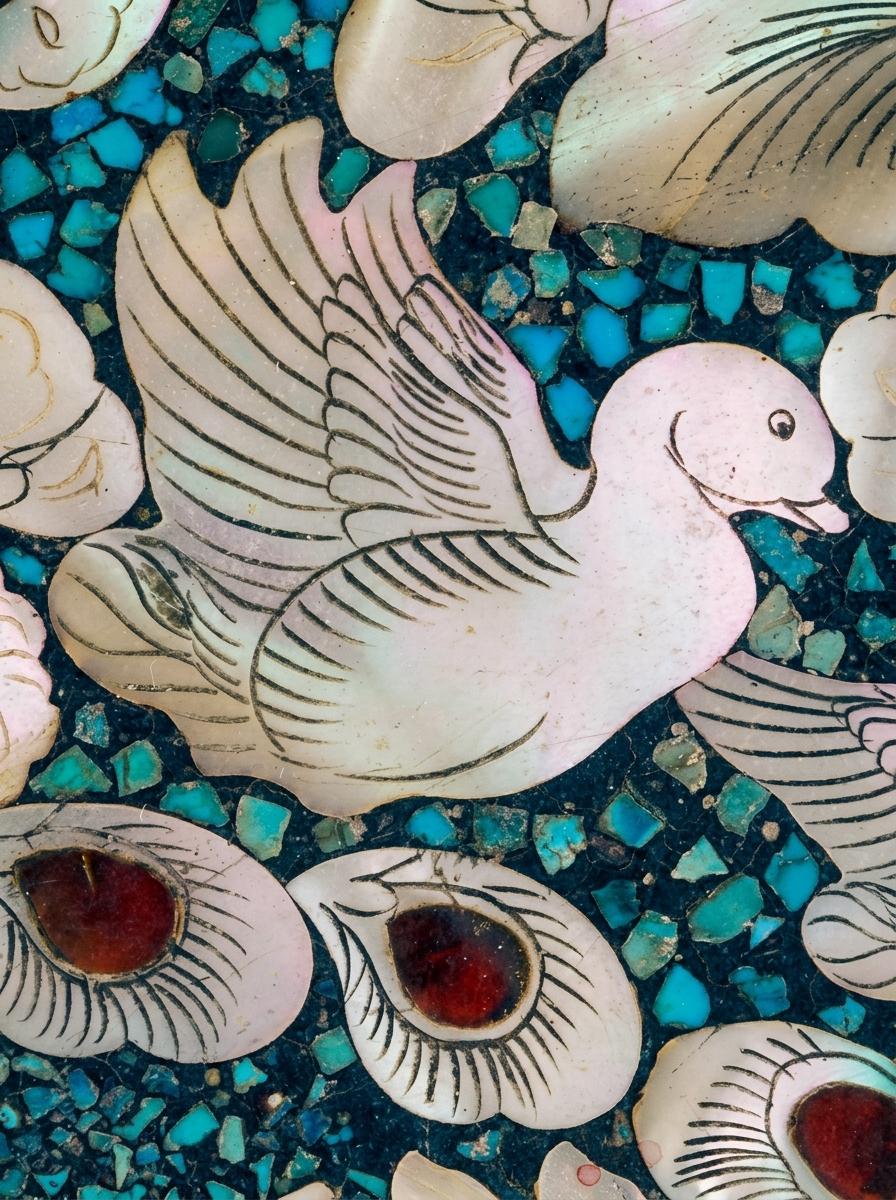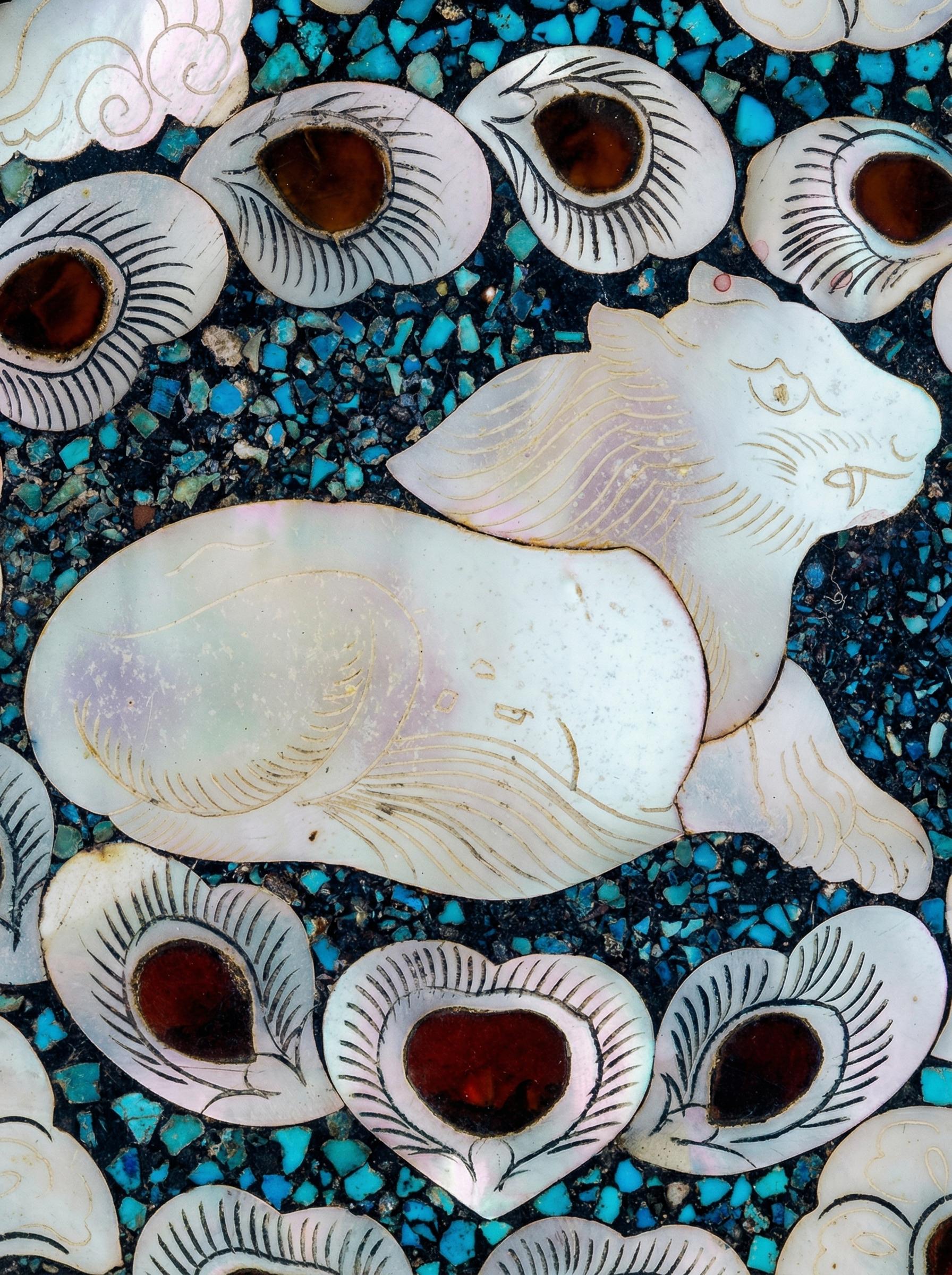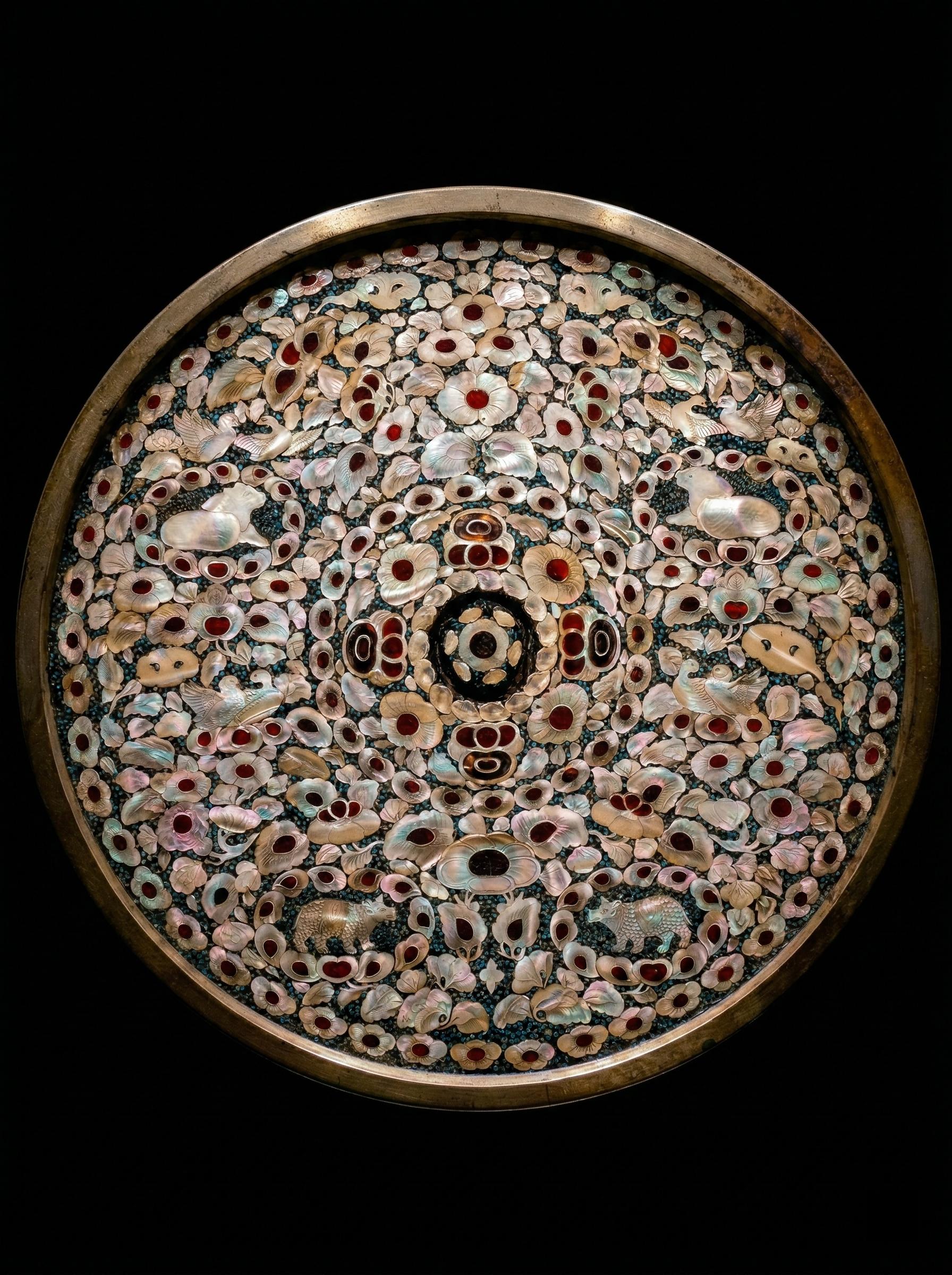 螺钿特有的幻彩,在光线流转间泛起如雾的虹光