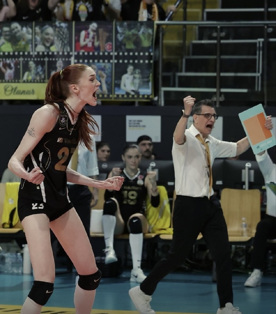 土耳其女排联赛决赛第三回合,瓦基弗银行3-1费内巴切(19-25 25-19 25-18 25-23)逆转胜出,场分2-1领先,距夺冠仅差一胜,下一场在4月16日费内的主场举行。此役,主场作战的瓦基弗首局和第二场一样,一传被对手小瓦和小彩娃冲的凌乱先丢一局,不过,主帅古德蒂第二局随即调整,首发换上发球带旋转、一传又稳定的卡绍特,代价是用乌亚尼克换下奥格博古。此举效果显著,有了一传的保障,双核马尔科娃和博斯科维奇从首局的进攻受限到后面的大开杀戒,瓦基弗乘势连扳三局扭转乾坤,所以,数据上法国一姐15扣1中0失误2被拦,1拦4发6分,虽然进攻差,但是发球拿4分、稳住一传的卡绍特,和进攻成功率超50%的队友马尔科娃和博斯科维奇一样是获胜的功臣!