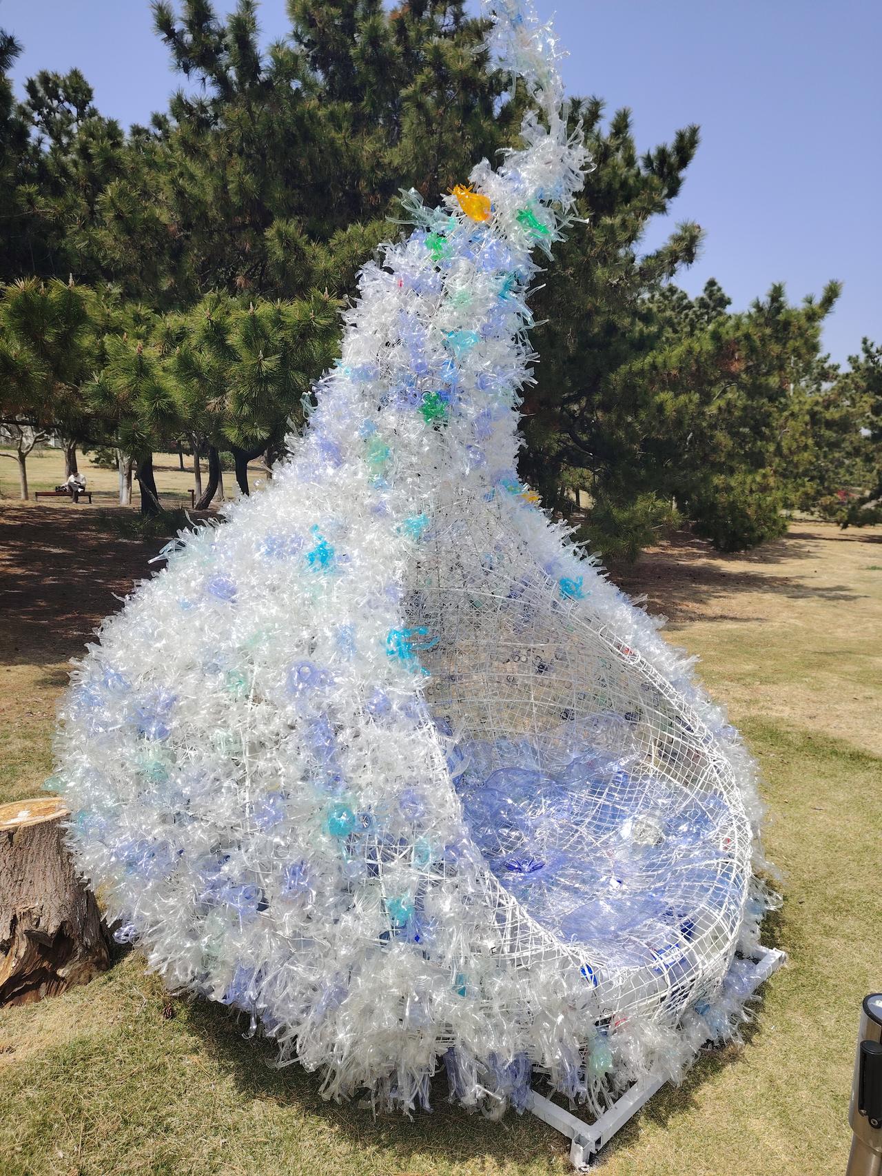 雕塑园新增利用废旧塑料瓶制作的公共艺术作品,虽未完工,但雏形已现,先睹为快!