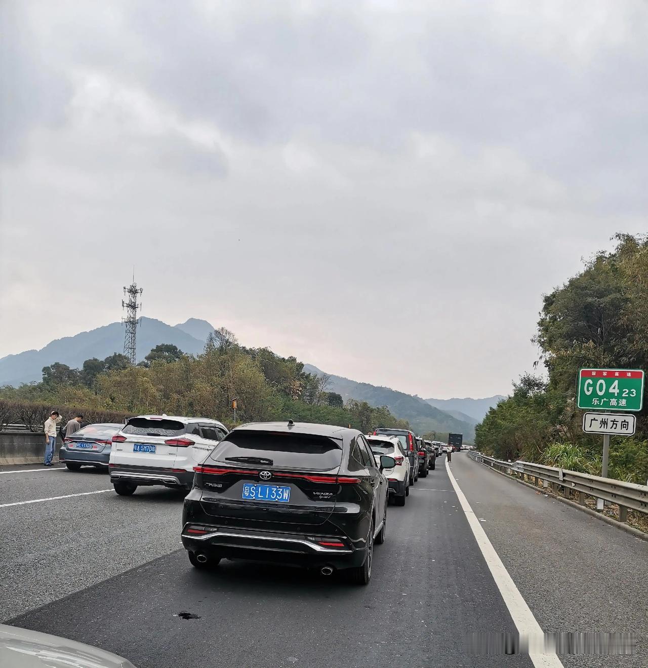 过了英德服务区,堵塞严重,高速路上遛狗,土鸡也在欣赏这高速盛况。