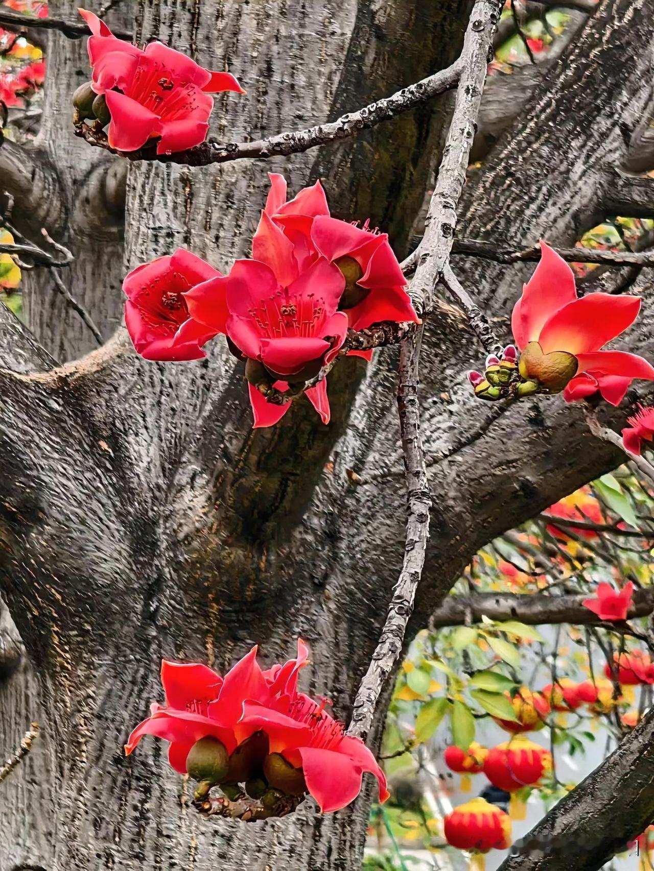 木棉花色鲜红、树形伟岸,向阳而生,不负“春风十里,不如一树木棉红”的盛名。