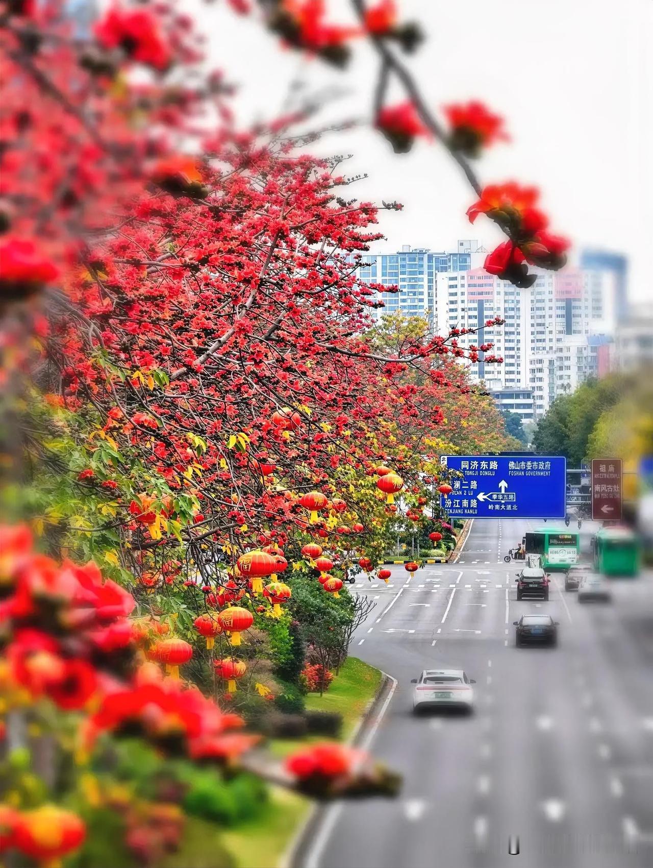 三月的佛山满城繁花,最惊艳的莫过于禅城岭南大道近10里的木棉花开。