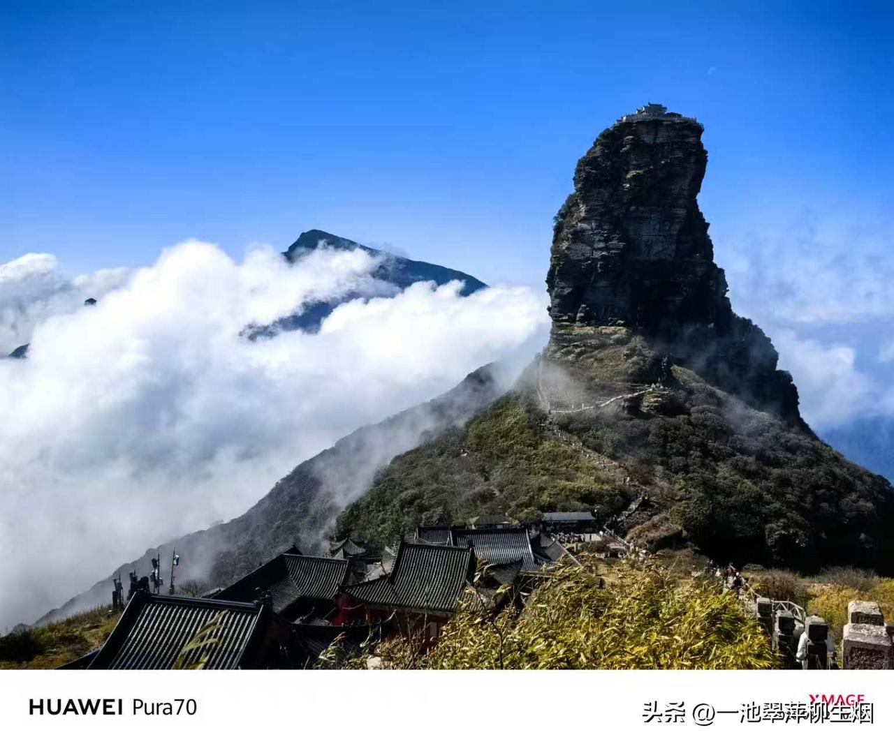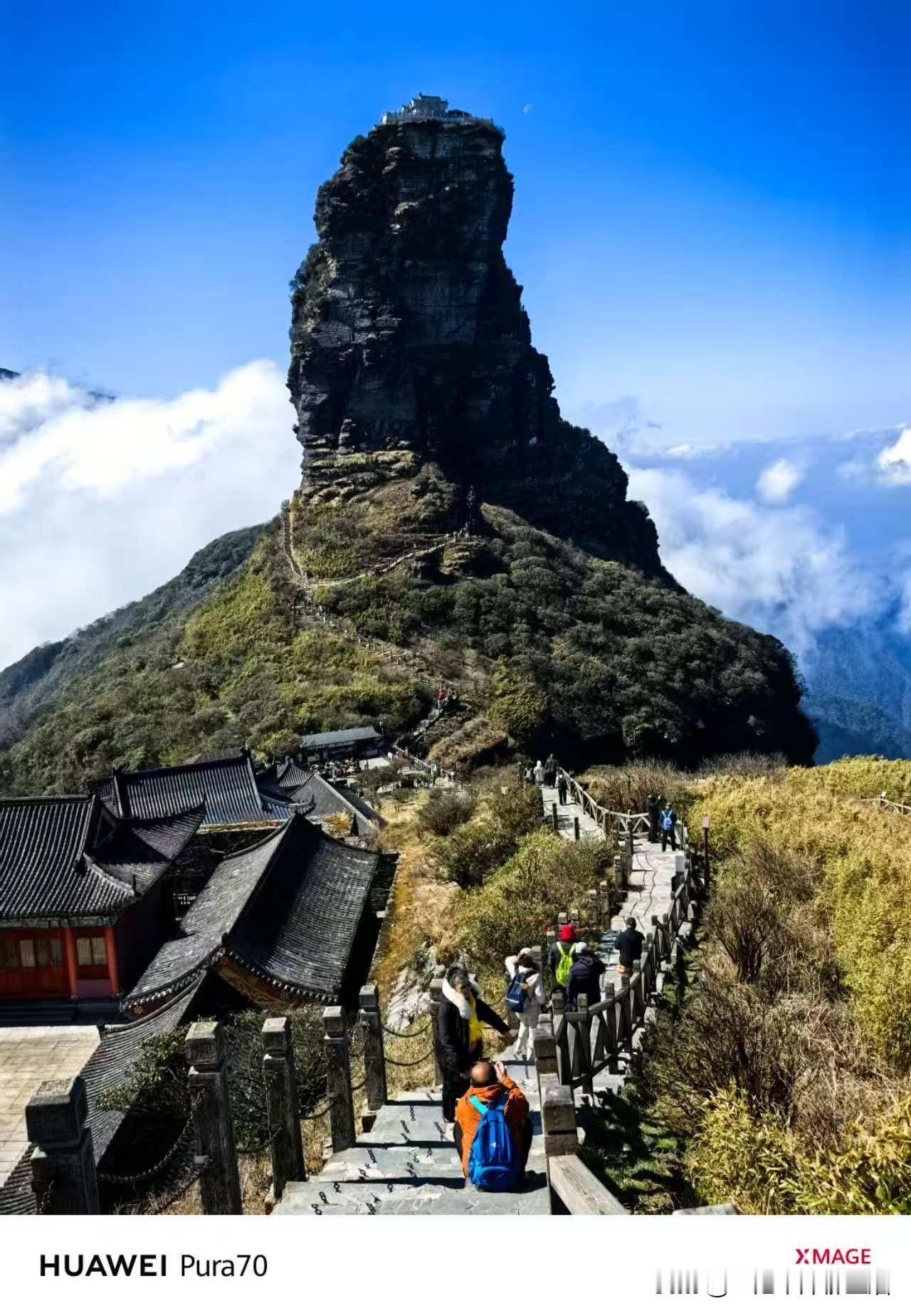 而立于梵净山之颠的红云金顶,从蘑菇石这山往红云金顶那边走去,这个角度的照片,看来看去,越看越像只坐于山颠的猴子。
