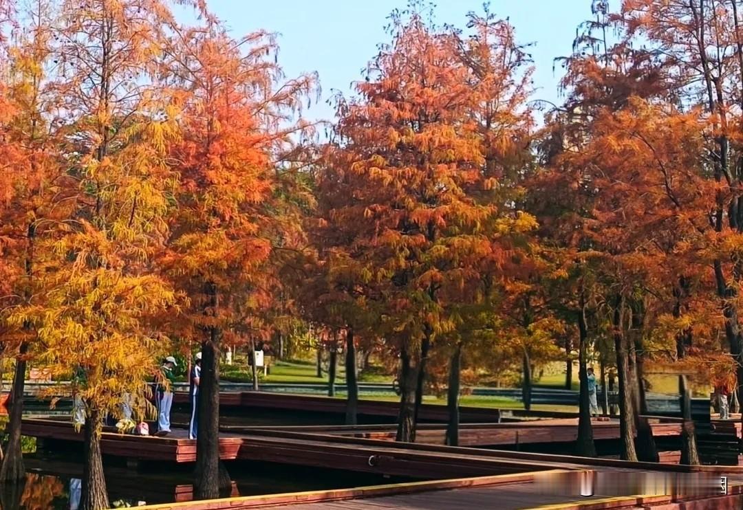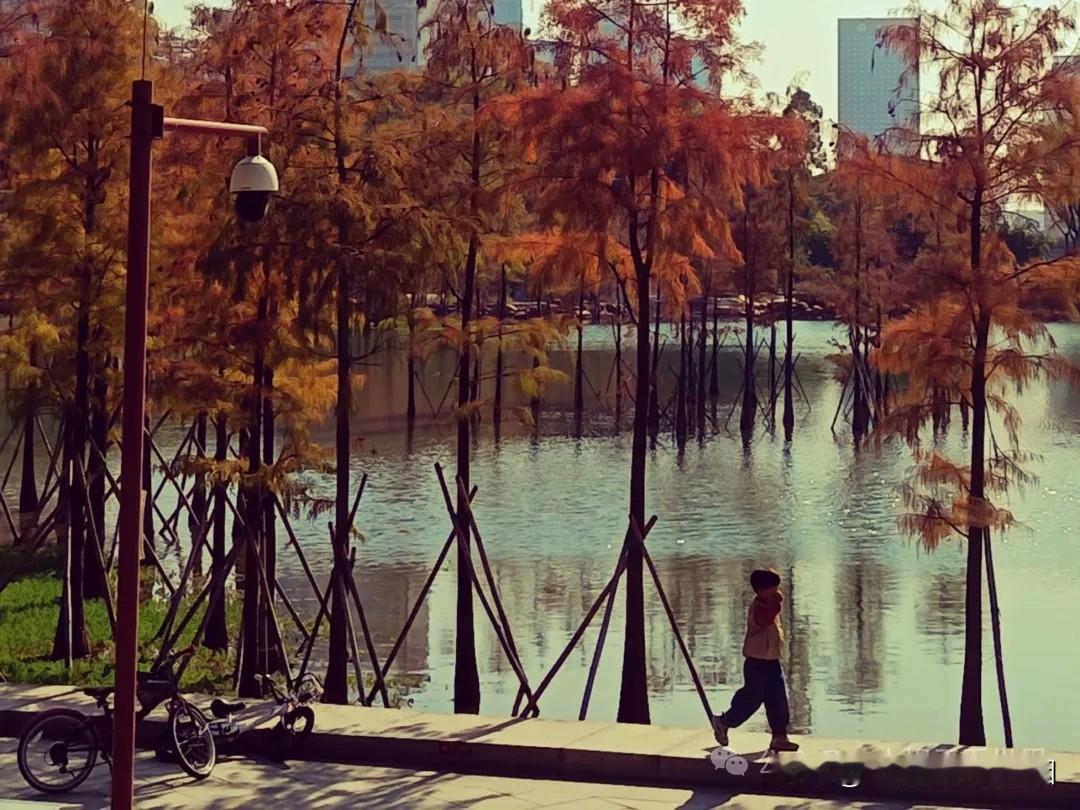 都说没见过落羽杉的红,不算过过广东的冬,确实如此,热烈又温暖的红黄暖色,犹如冬日里的一杯红酒,让人眼前一亮,心里一暖。