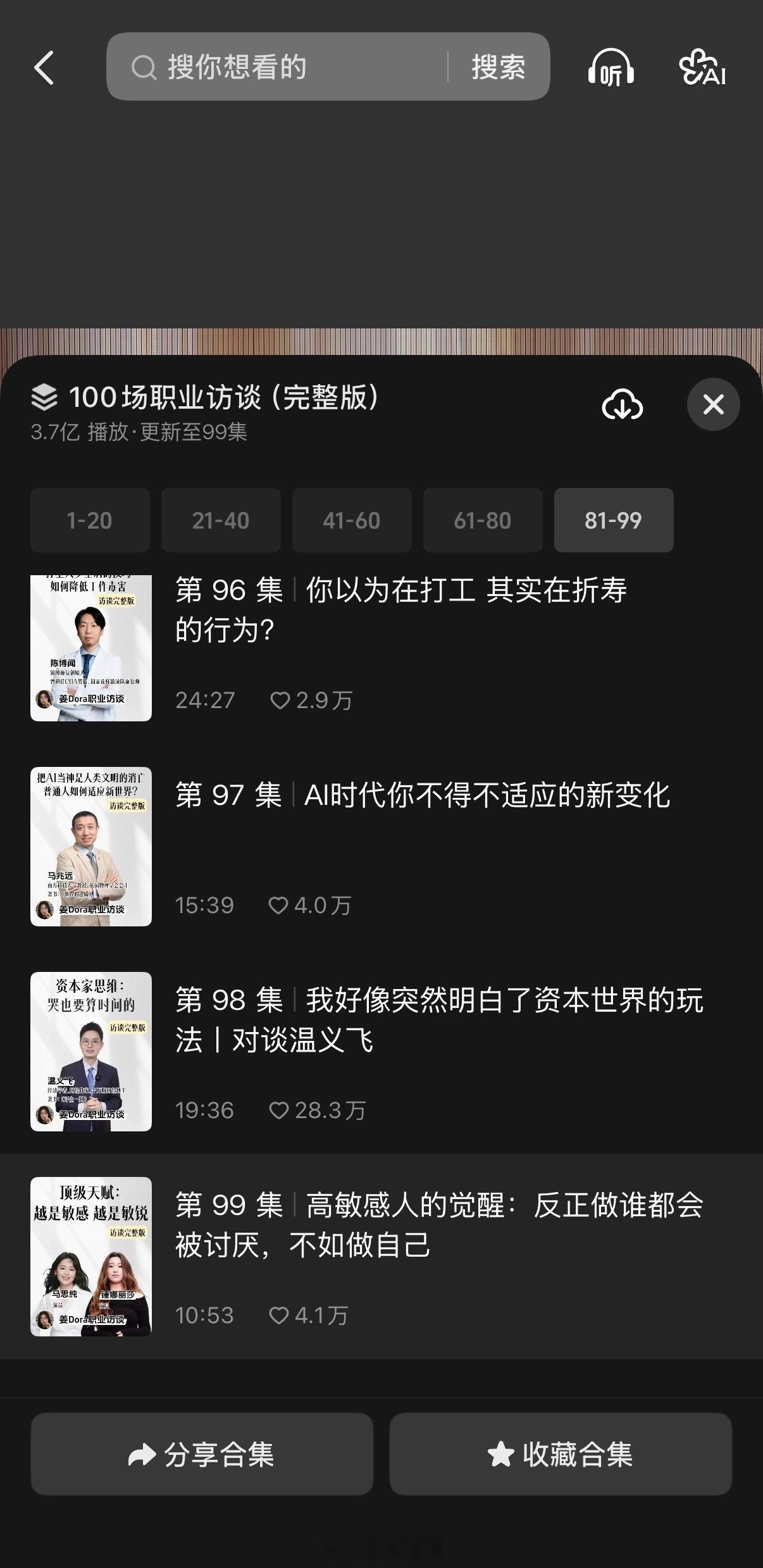 2、姜Dora姜Dora以访谈为主,每一期都有不同的大咖嘉宾,跟各行各业的人聊——AI时代的职场变化、压力面前的专注、女性在职场里怎么被看见,经常有开盲盒的惊喜感。我印象最深的是她聊“高敏感女性的自我成长”。她请了马思纯和锤娜丽莎,三个人坐在一起,聊敏感、聊友情、聊怎么从讨好别人的壳里走出来。姜Dora的访谈里还有一个特别打动我的点:她总是强调“女性之间的支持”。马思纯会主动关心朋友的新专辑,朋友们会自发转发支持,不是利益交换,就是单纯的“我希望你好”。这种氛围,在姜Dora的视频里随处可见。她还聊“入室抢劫般的友情”——就是那种不需要客套、不需要试探,直接表达善意、直接靠近的关系。她说,双向奔赴的友情才值得珍惜,单方面付出的关系,该放手就放手。