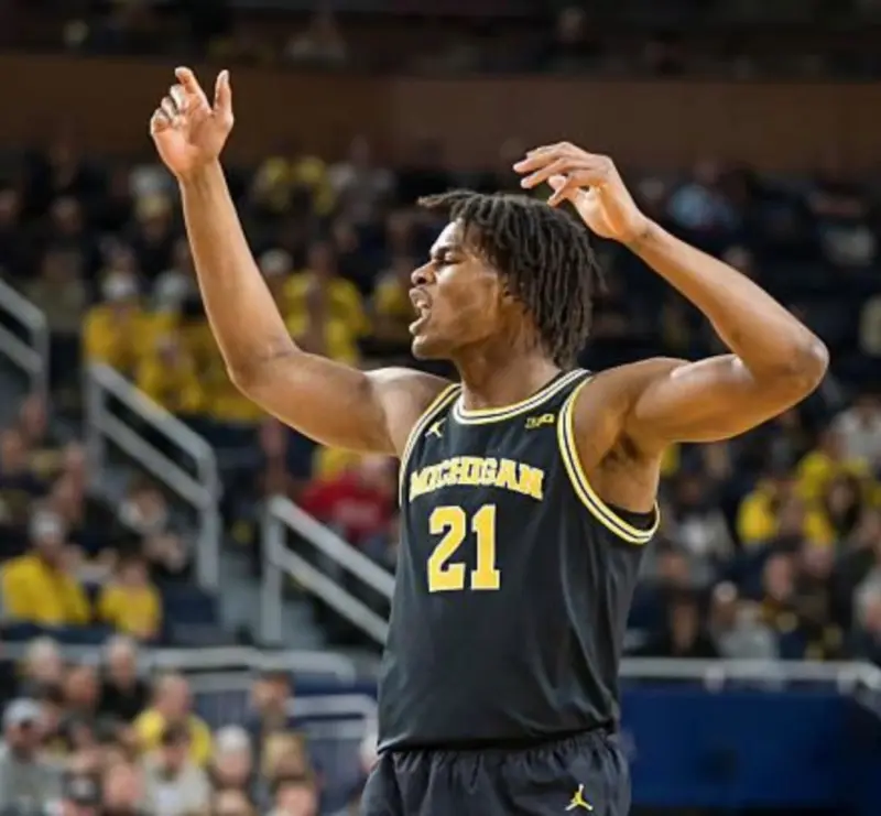 他的定位很明确:赢球拼图,防守万金油。本赛季场均13.1分7.3篮板1.2助攻,投篮命中率62.3%,三分34.3%,罚球78.2%。更关键的是防守高阶数据——在场时密歇根防守效率90.1(全美第1),一下场就掉到98.1(全美第17)。