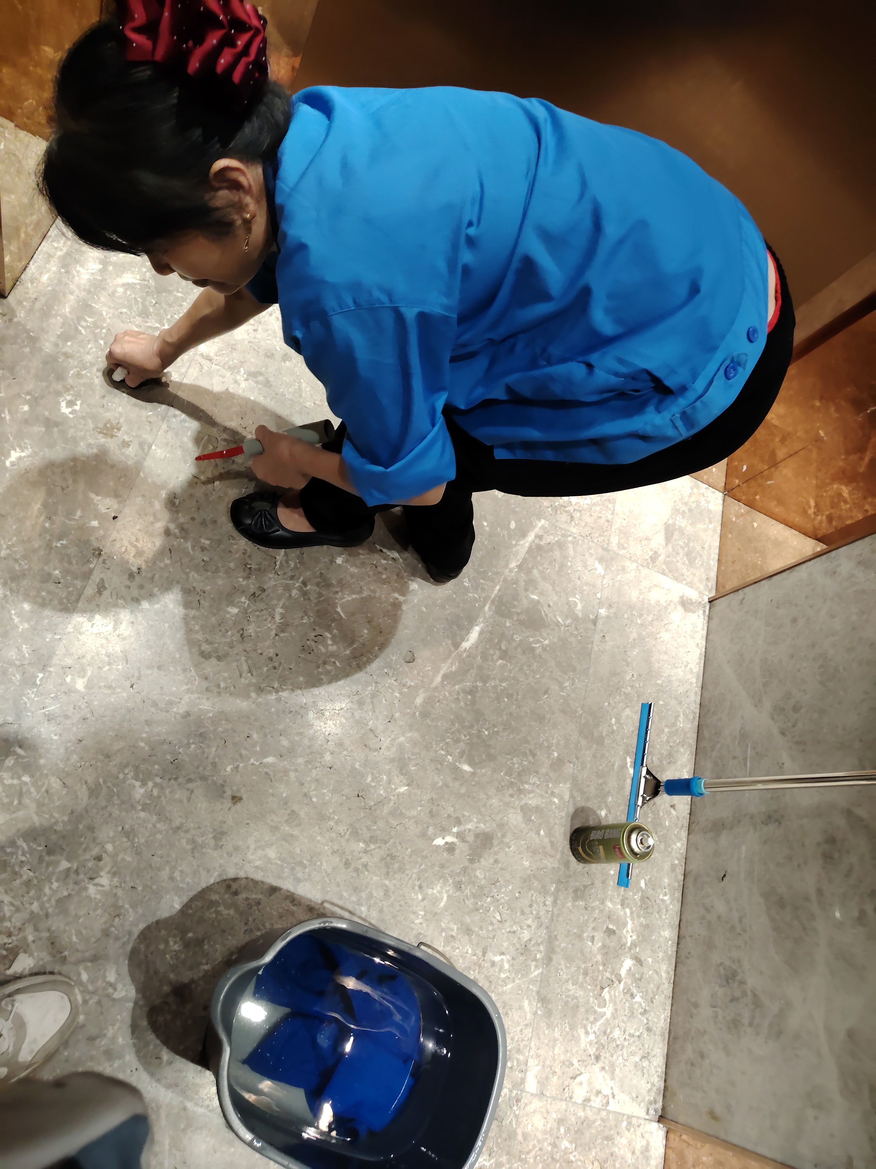 在一个小区送外卖,看见电梯里打扫卫生的阿姨干活可认真了,边边角角都清洁到位了,厉害