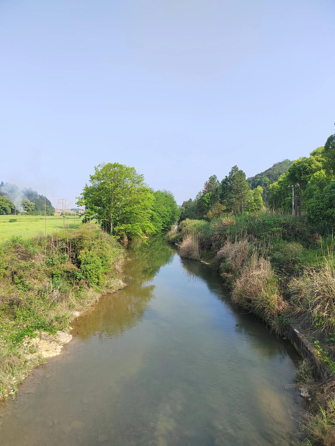 峤岭水上游——安义新民段 峤岭水是潦河的一级支流,体量远小于北潦河,何况还是上游,所以实际上是一条天然的大号水渠。不过,毕竟贴着山区,所以水质看上去还是不错的。 旁边山脚下塔吊🏗林立,不知道是在建什么设施。