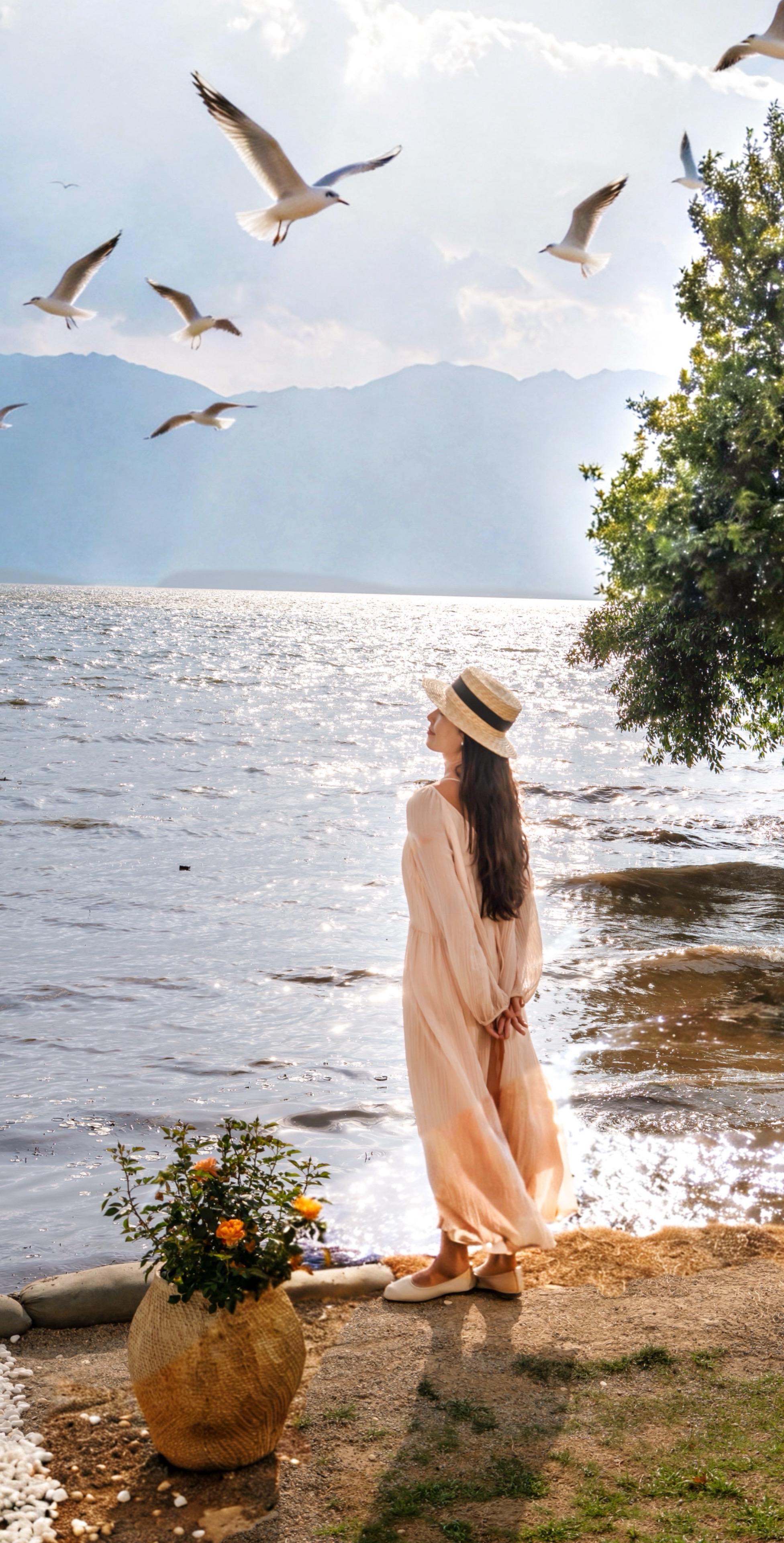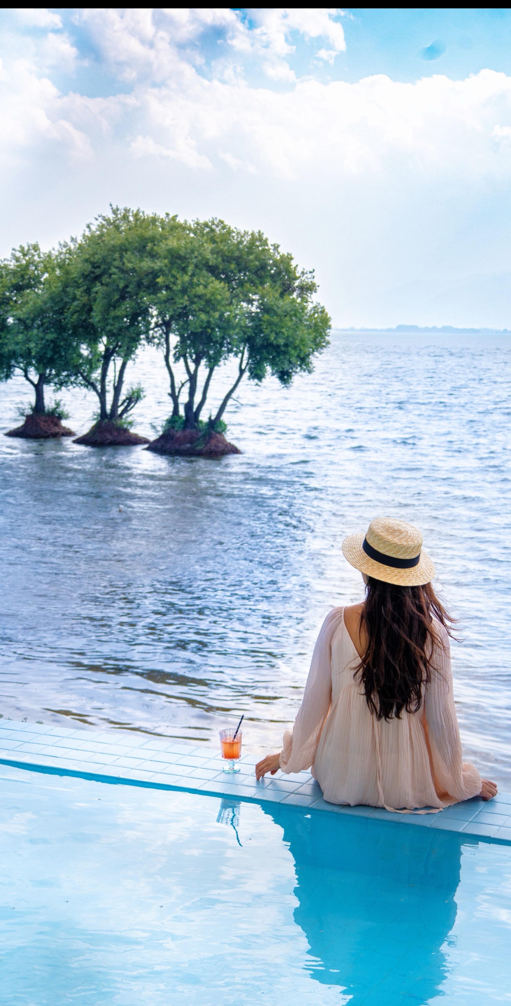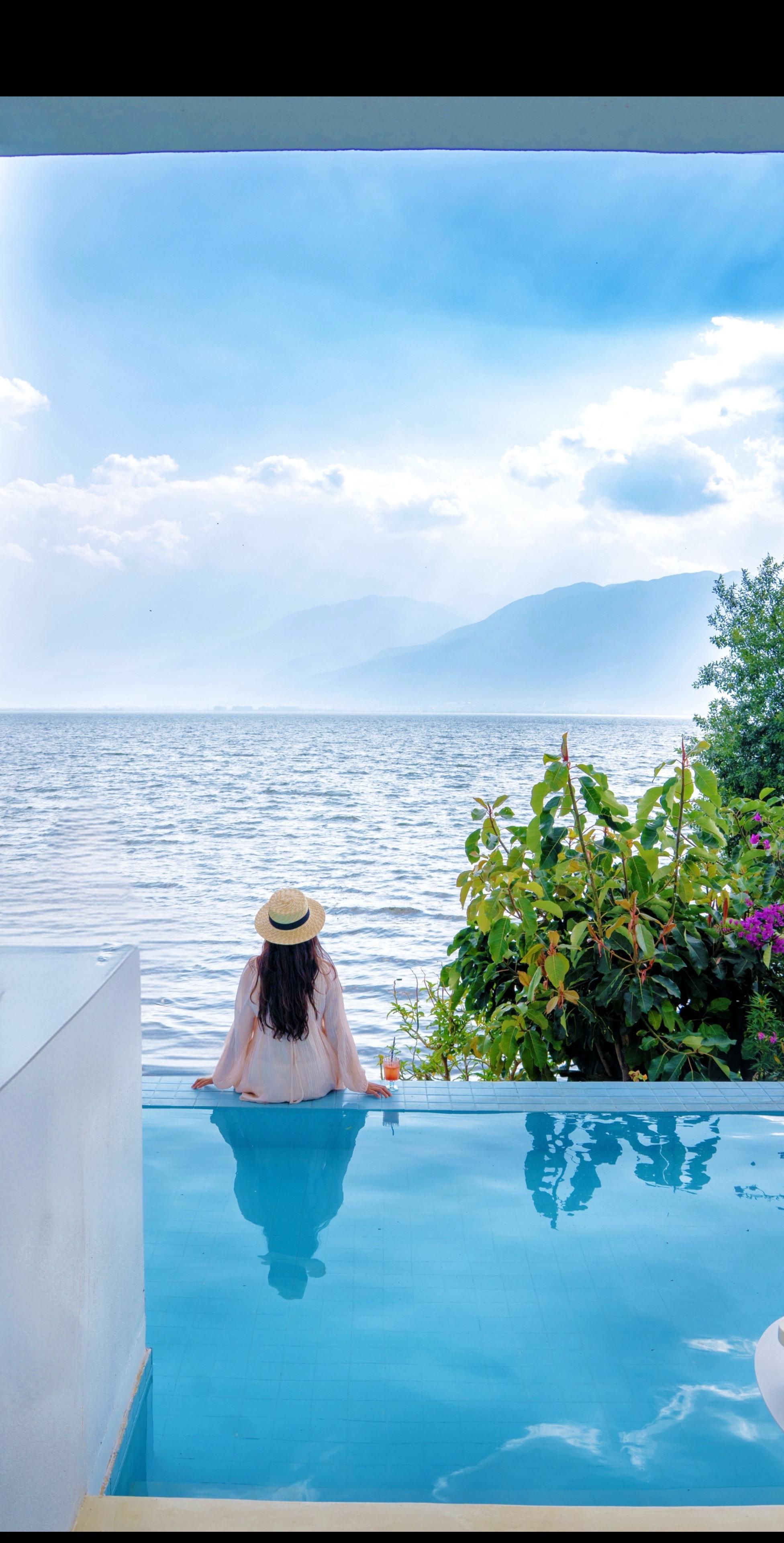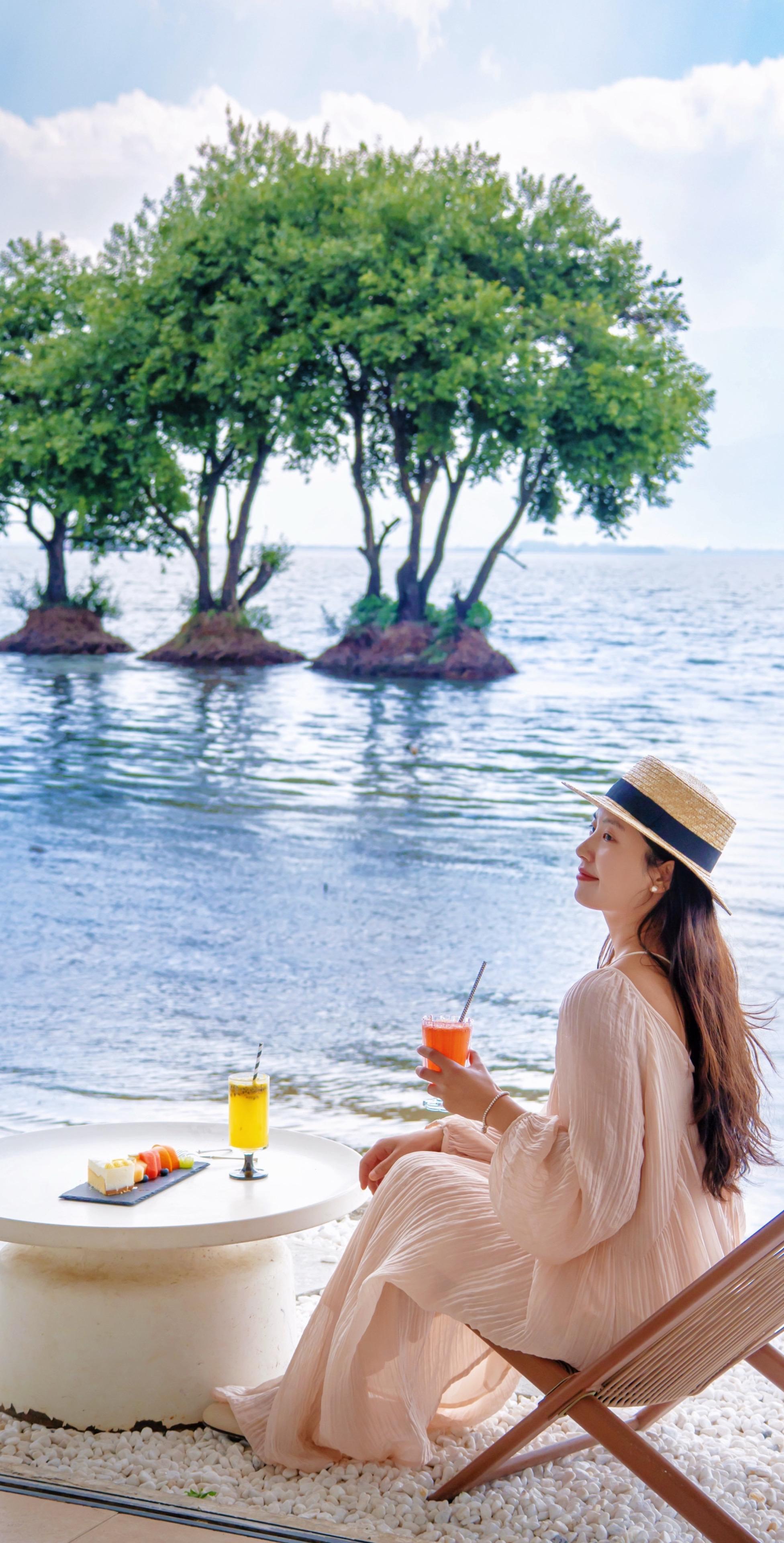 270°落地窗,洱海湖畔的三颗树倒影着黄昏,在这里和闺蜜一起下午茶,看海,聊天……