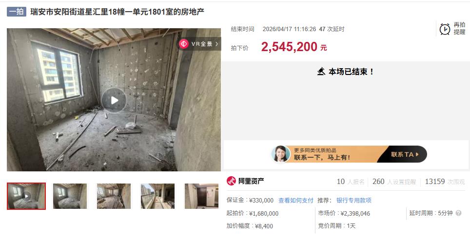近日,一套位于瑞祥新区的星汇里(万科星汇里)房产竞拍落下帷幕,最终以254.52万元成交,这场竞拍备受瞩目,吸引众多目光,具体情况让我们一起来看下吧。