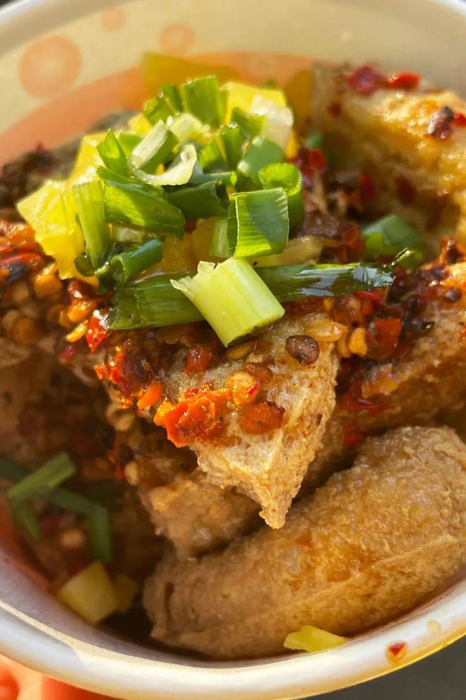 内里软嫩到像豆腐脑,吸满秘制鲜辣汤汁,咸香入味,没有怪味,只有浓郁豆香+香辣回甘,越吃越上头,完全不腻!