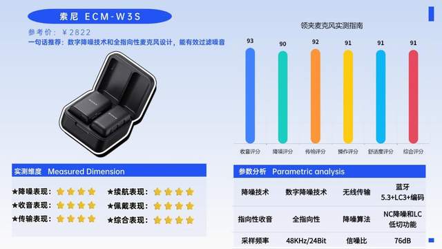 续航方面,发射器单次续航8小时,搭配充电盒总续航24小时,满足长时间专业拍摄需求。兼容索尼相机、手机等多设备,Type-C接口适配不同场景,配件齐全,实用性强。品质可靠,延续索尼一贯的严苛品控,耐用性出色。总体来看,索尼ECM-W3S收音专业、降噪强效、传输稳定,适合预算充足的索尼生态用户及专业创作者,能应对各类专业拍摄场景,是品质与性能兼具的专业之选。