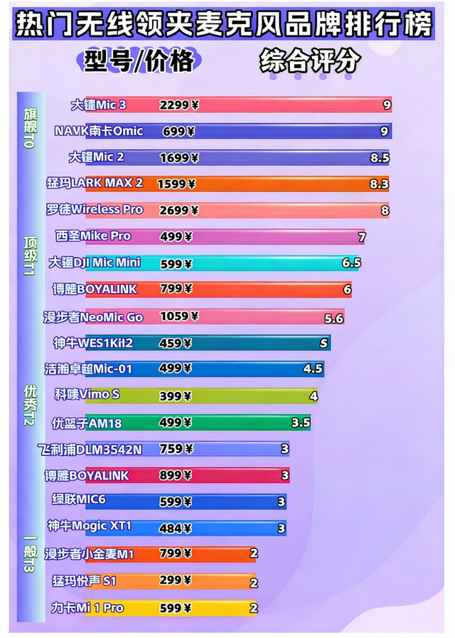 为了帮不同预算的用户都能精准选到适配产品,本文摒弃“一刀切”的推荐逻辑,精选从百元入门到千元专业级的十余款爆款领夹麦克风,全面覆盖入门、进阶、专业三大预算梯队。每款产品都经过核心性能深度拆解,从收音清晰度、降噪效果、无线传输距离,到操作便捷度、佩戴舒适度、续航能力等关键维度,直观呈现真实使用表现。无论你是预算有限的学生党、刚起步的新手创作者,还是追求专业质感的资深博主、商业拍摄团队,都能在这里找到符合预期的选择,让高质量收音不再受预算限制,每一分投入都能精准匹配创作需求。