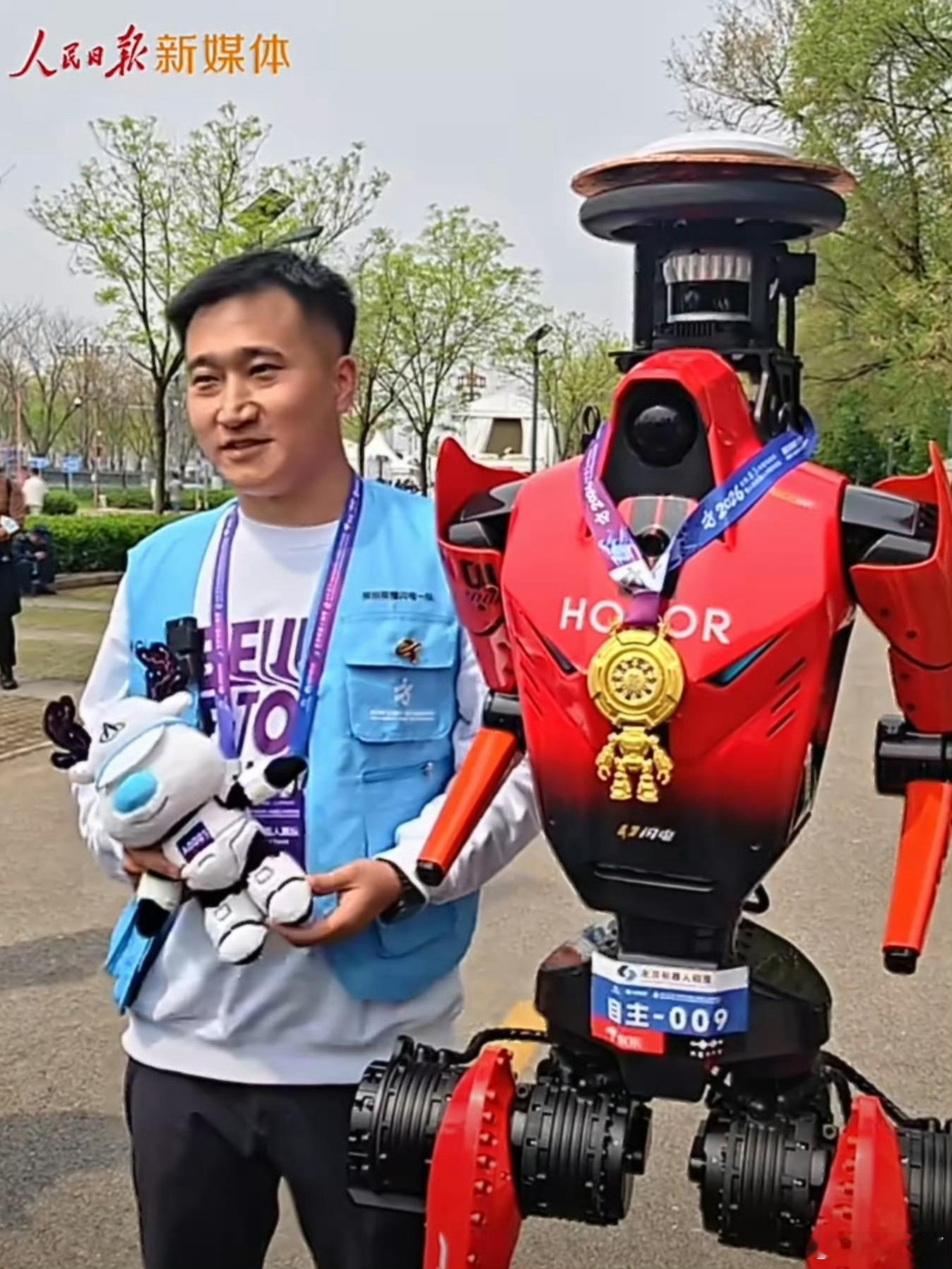 人民日报对话机器人半马冠军队50分26秒!人形机器人第一次跑赢了人类半马纪录。