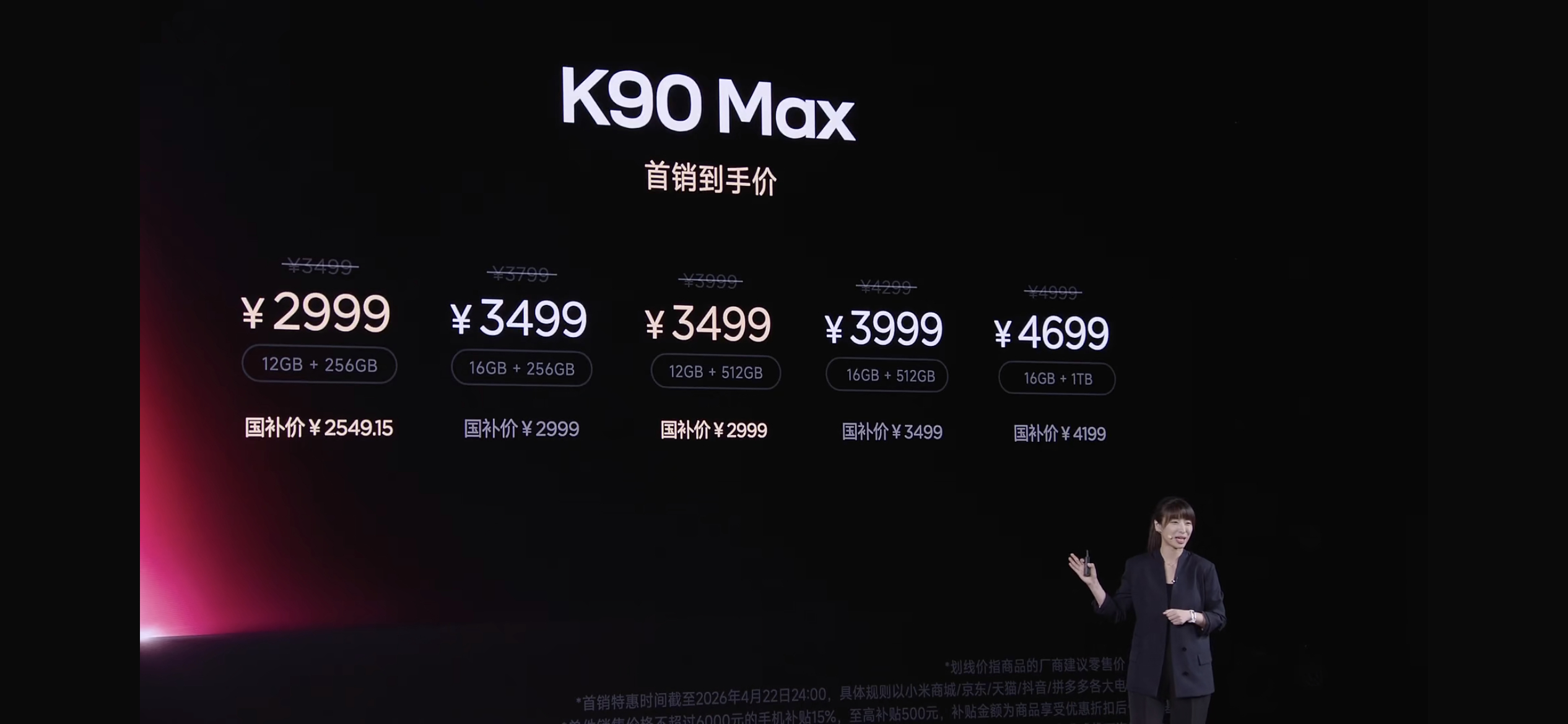 8550mAh超大电池+100W,还支持旁路充电边玩边充不发烫,配合Bose调的脚步声增强200%,吃鸡玩家狂喜。165Hz电竞屏原生适配40多款游戏,超分超帧能跑到上百款。5000万主摄带OIS,f/1.68大光圈,日常拍照够用,整机媲美友商旗舰,关键价格才2999起,国补才2500左右起。K90Max价格红米K90Max发布会