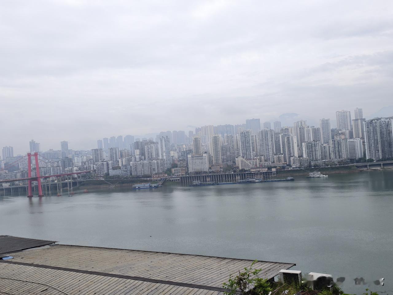 我们俩从长江边,沿着青石板路往上翻,爬到云梯街。累的不行了,从上往下看,我们是长江就在我们脚下。