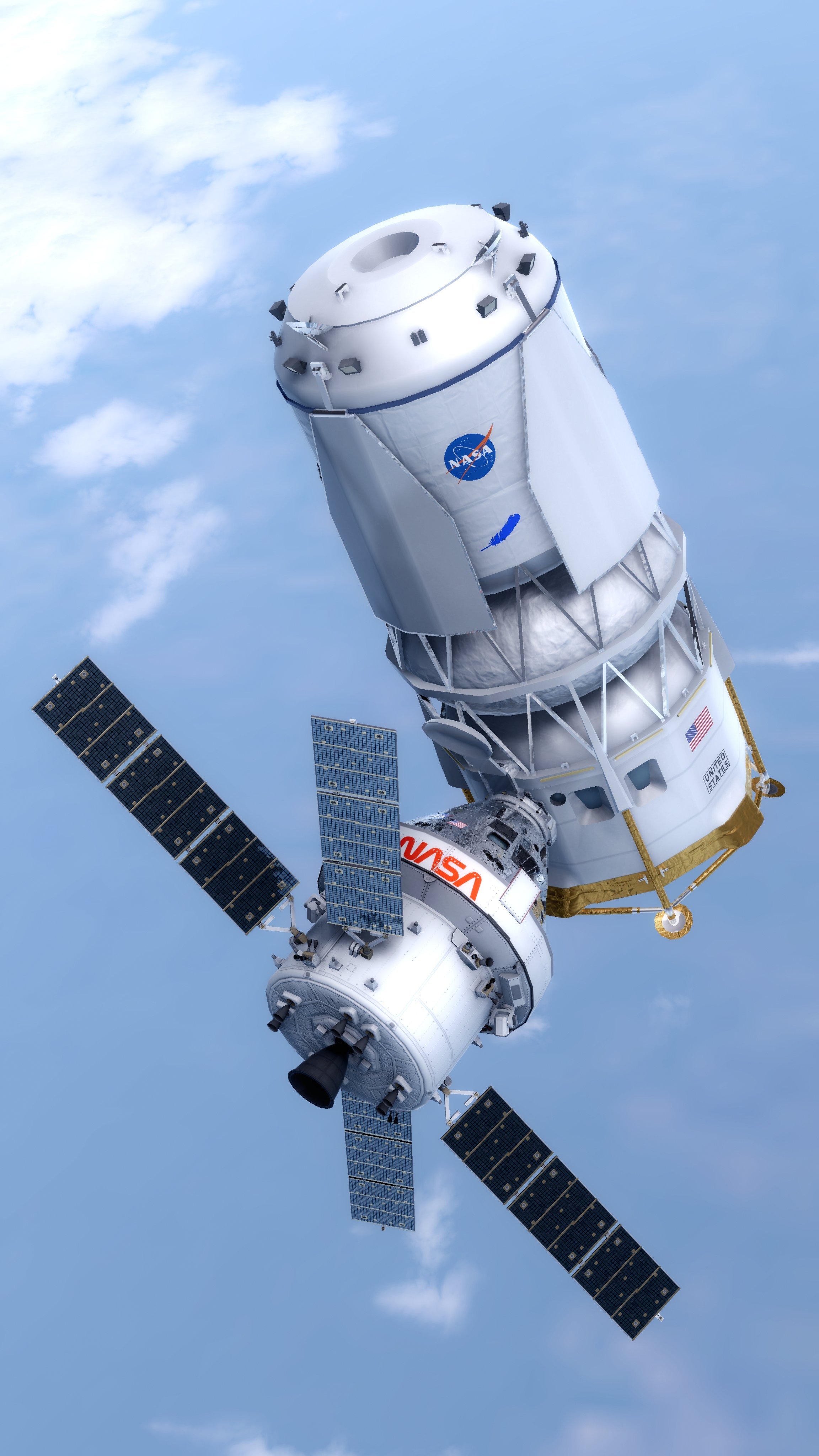 阿尔忒弥斯3号近地轨道演示任务KSP渲染图:猎户座载人飞船和蓝月亮HLS对接